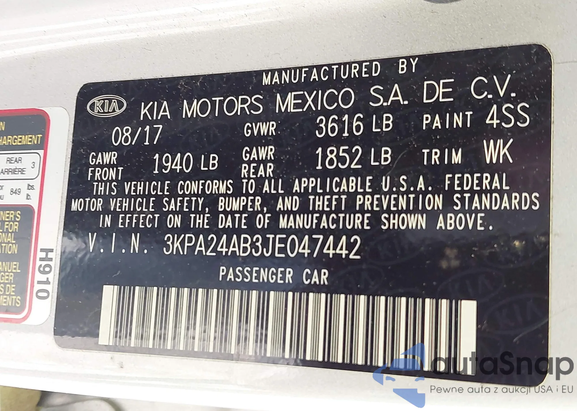 • VIN 3KPA24AB3JE047442