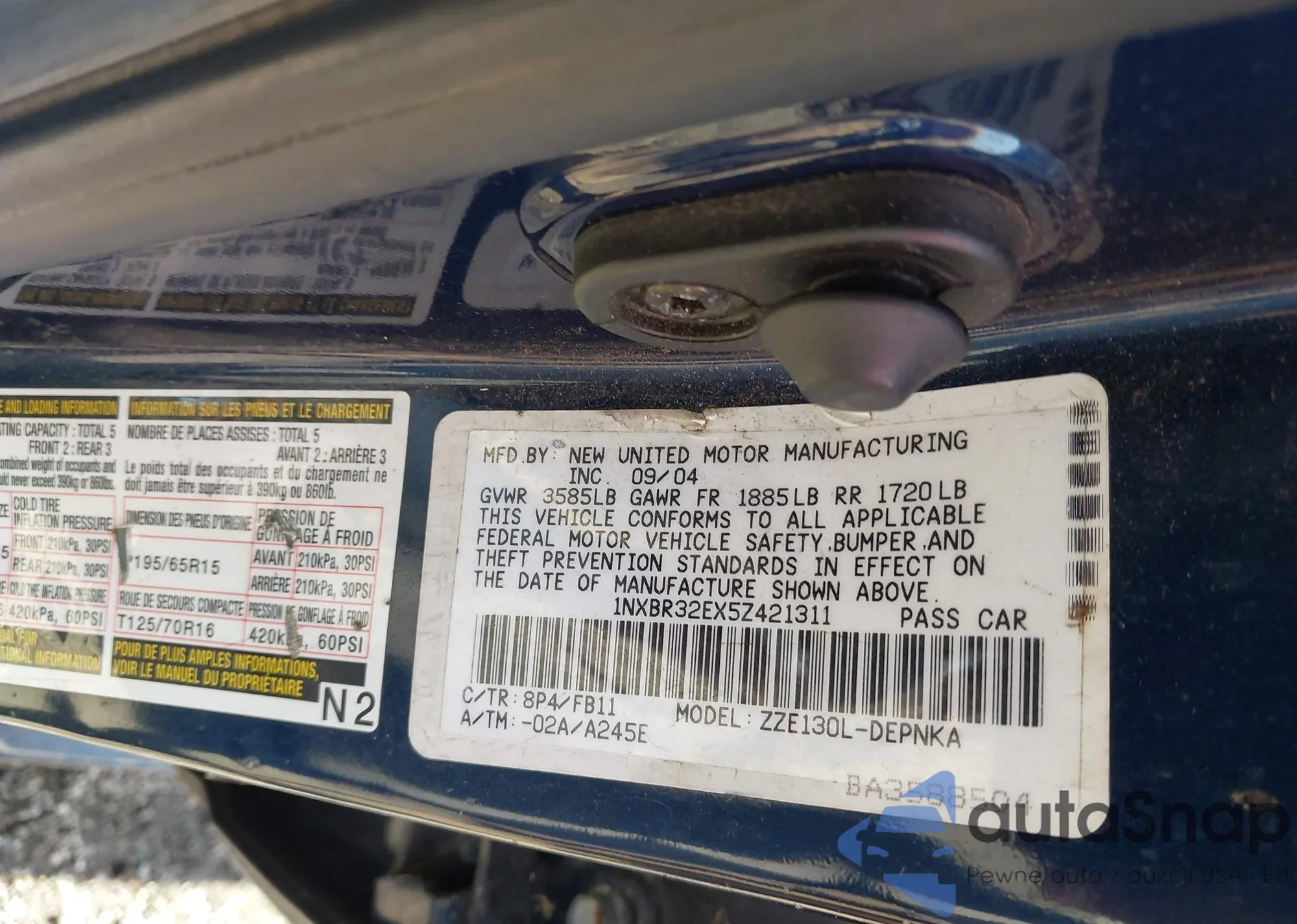 • VIN WBAFR1C58BC747924