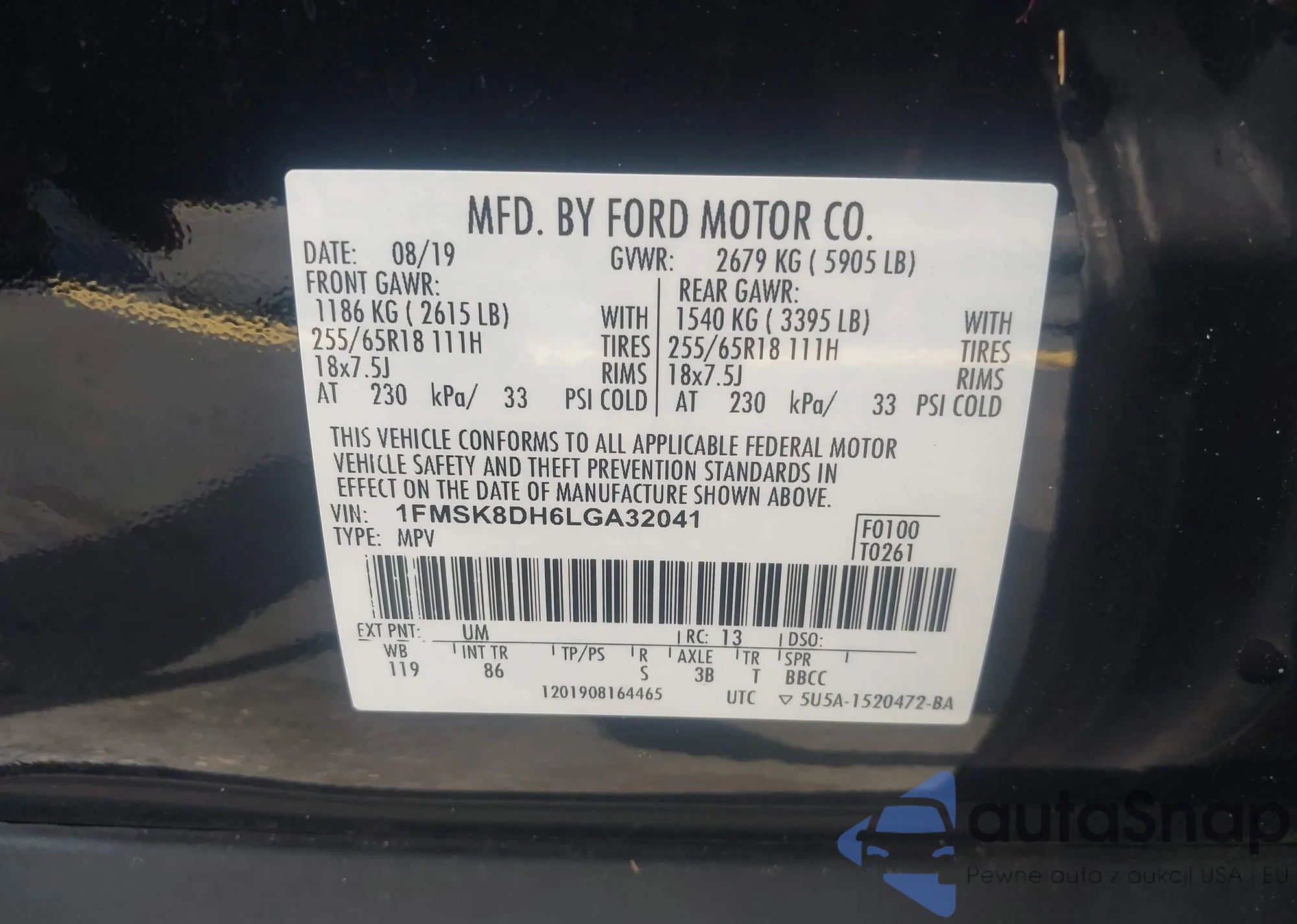 • VIN 1FTYR3XM7JKA30931