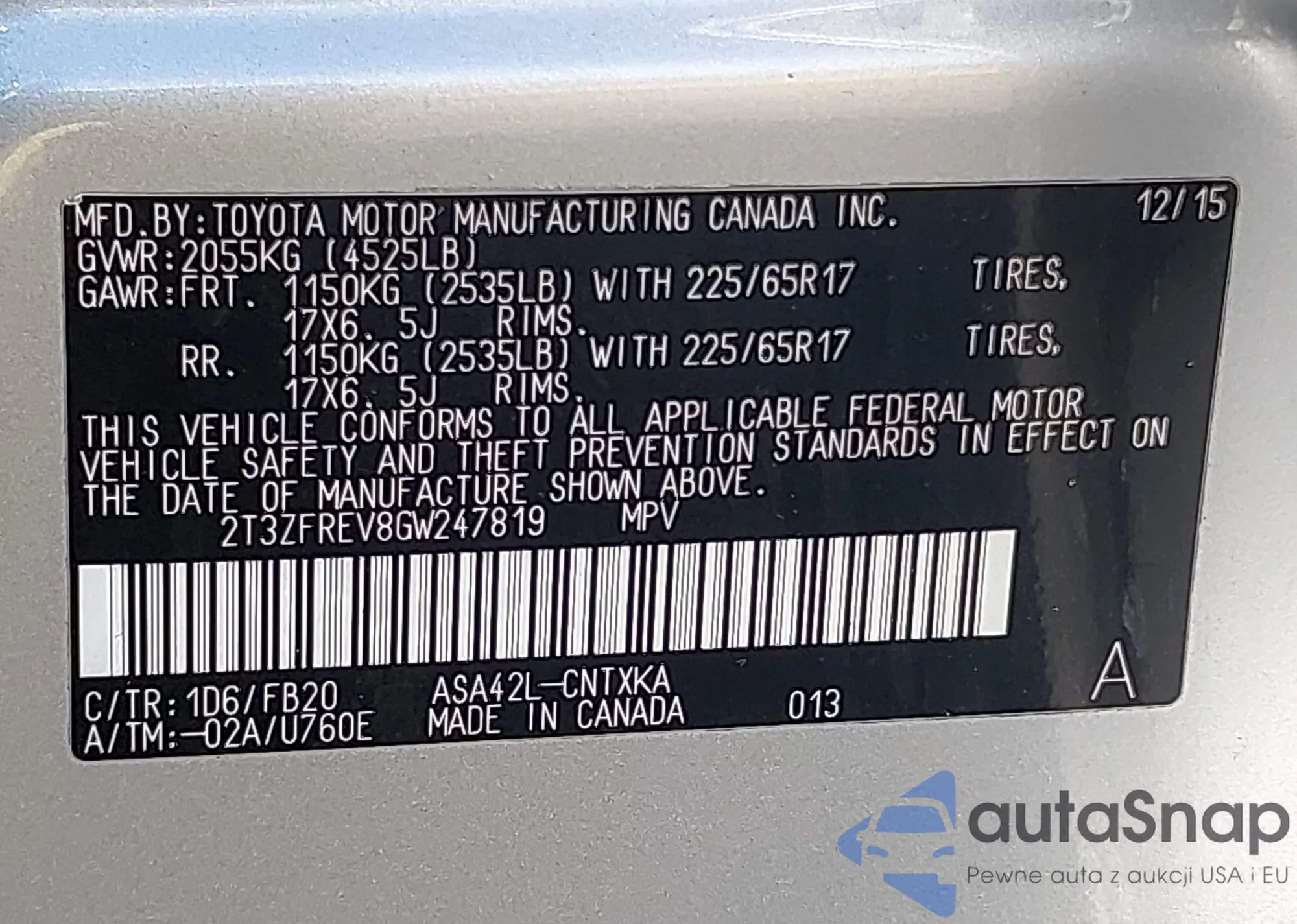 LOT: 42392361 VIN: JTMBD33V665033781