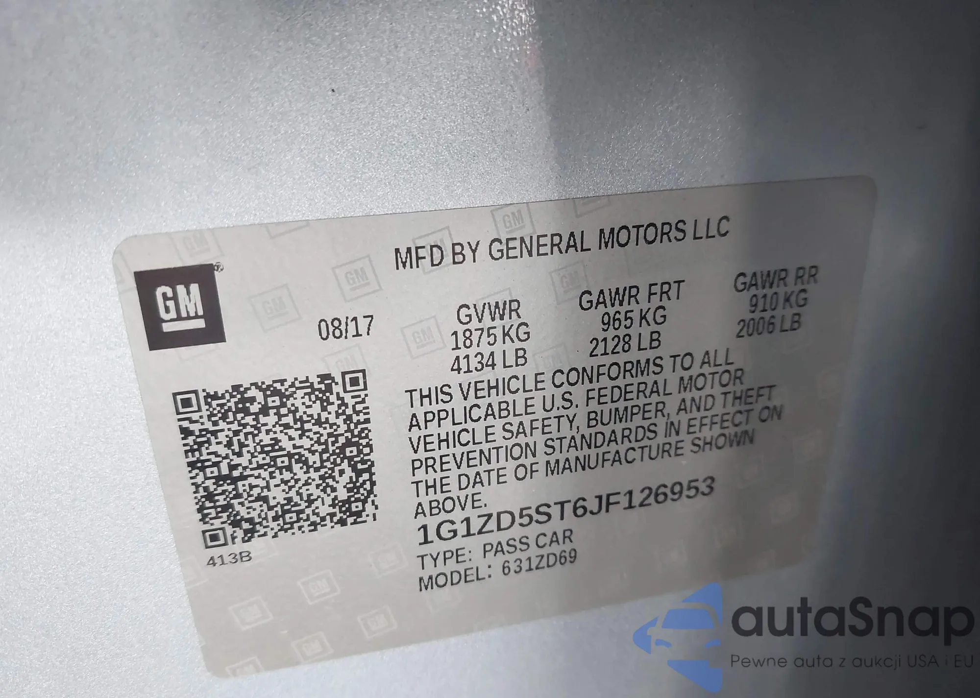 • VIN 1G1ZD5ST6JF126953
