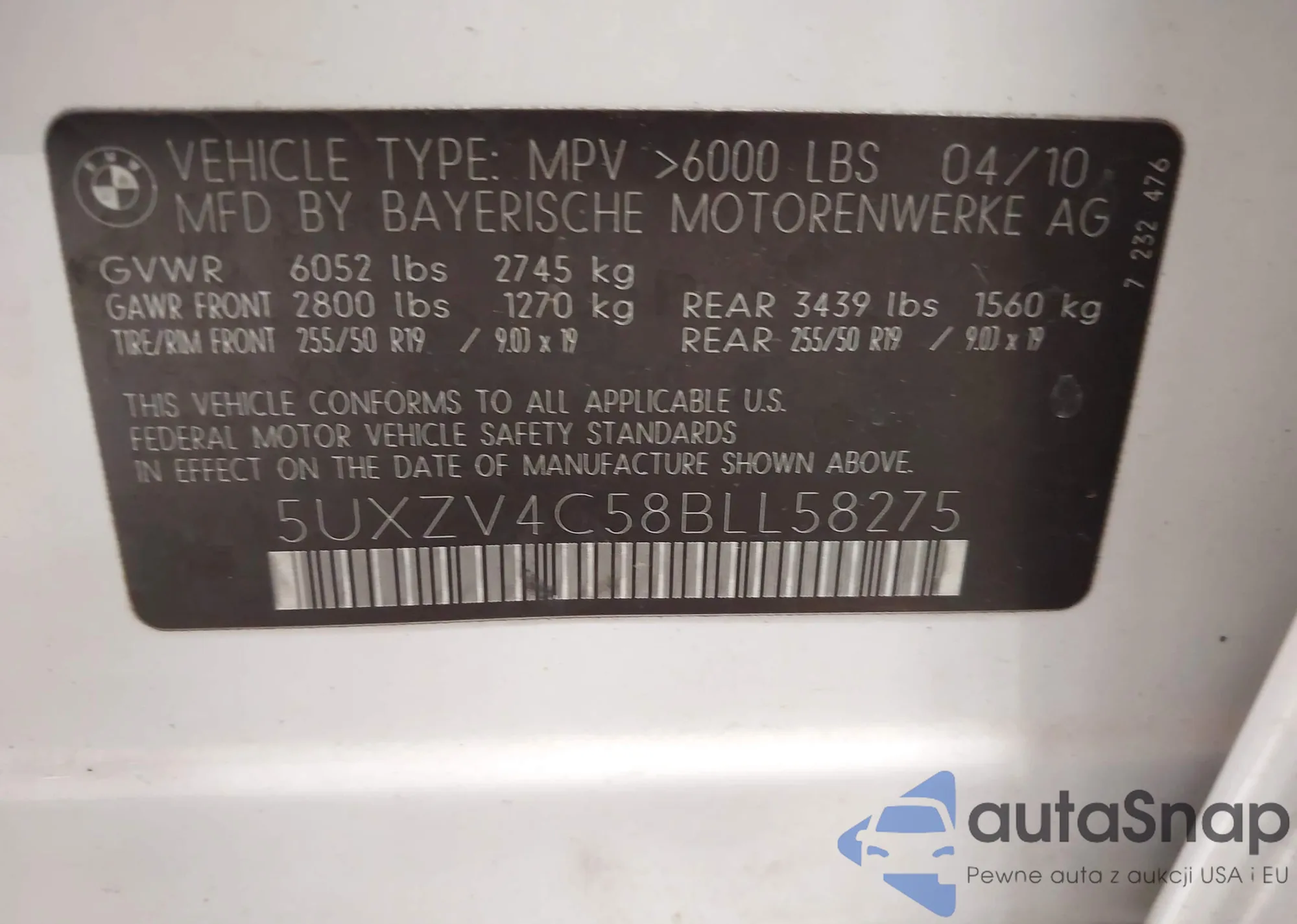 • VIN 5UXZV4C58BLL58275