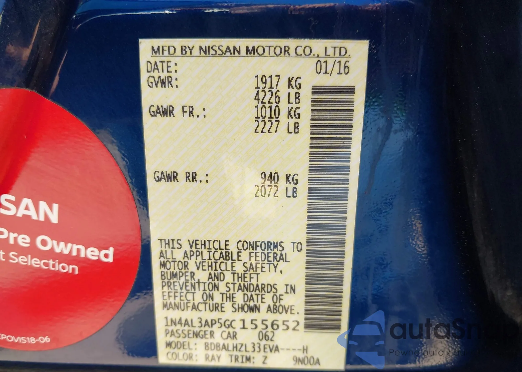 • VIN 1N4AL3AP5GC155652