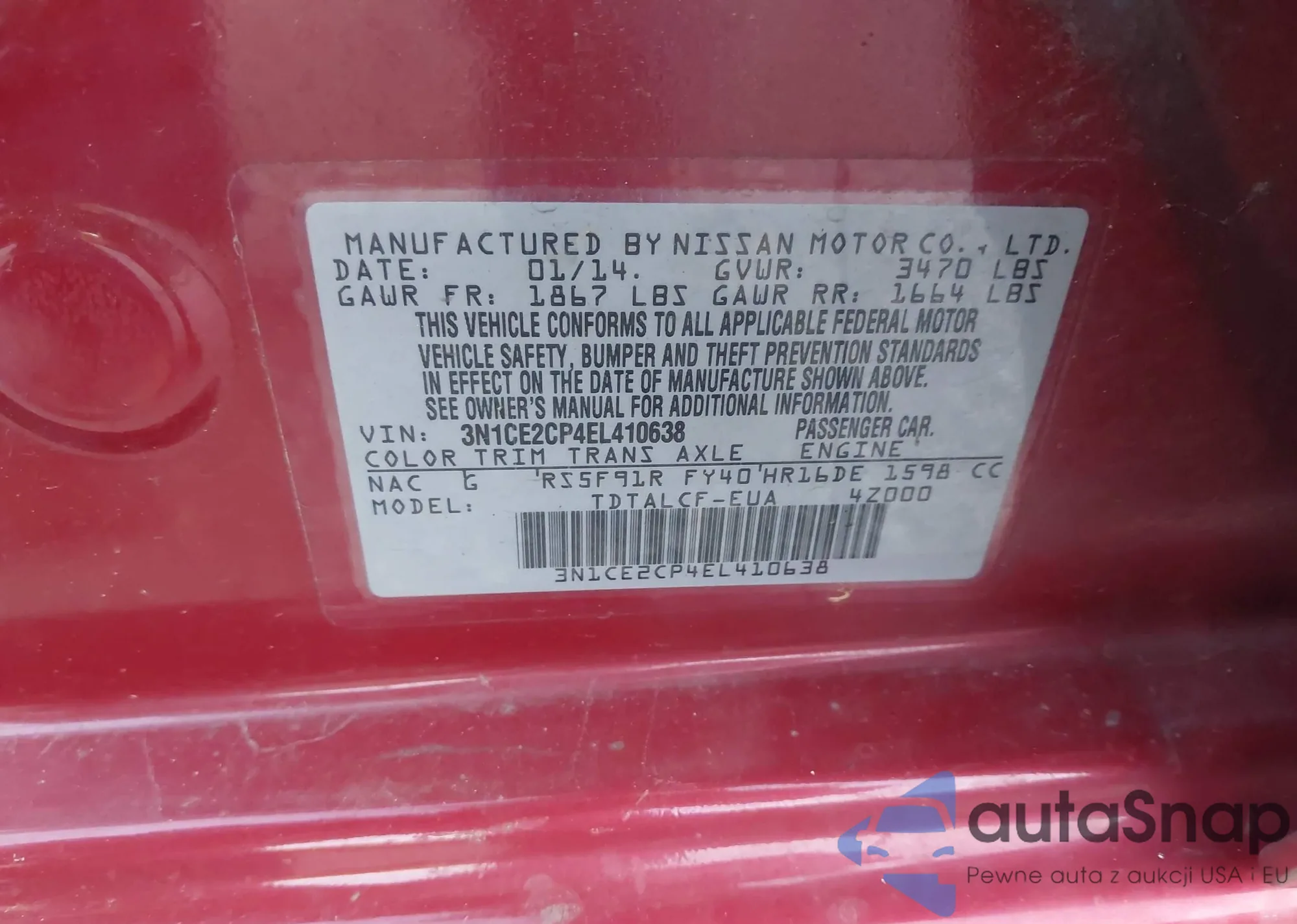 • VIN 3N1CN8EVXML884638