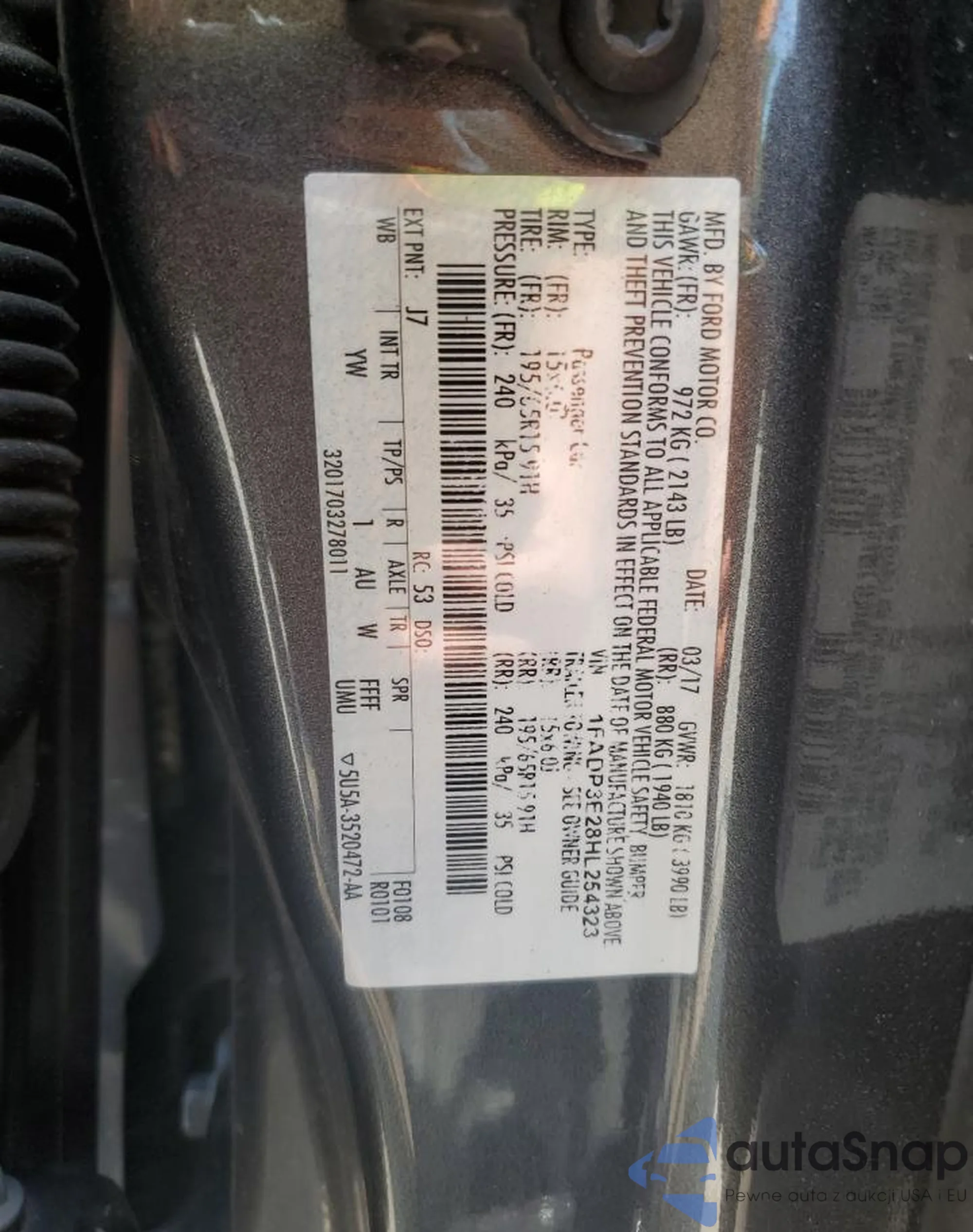 LOT: 60148975 VIN: 1FADP3E28HL254323