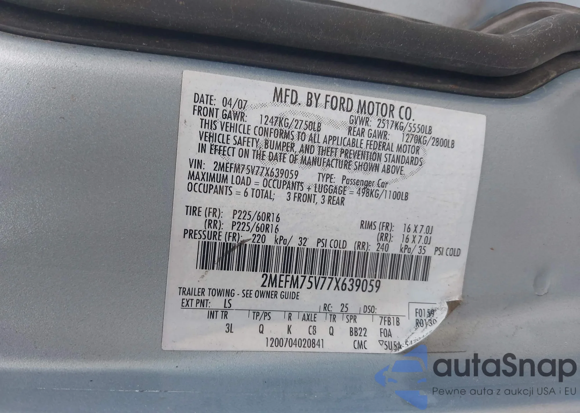 LOT: 42414410 VIN: 2MEFM75V77X639059