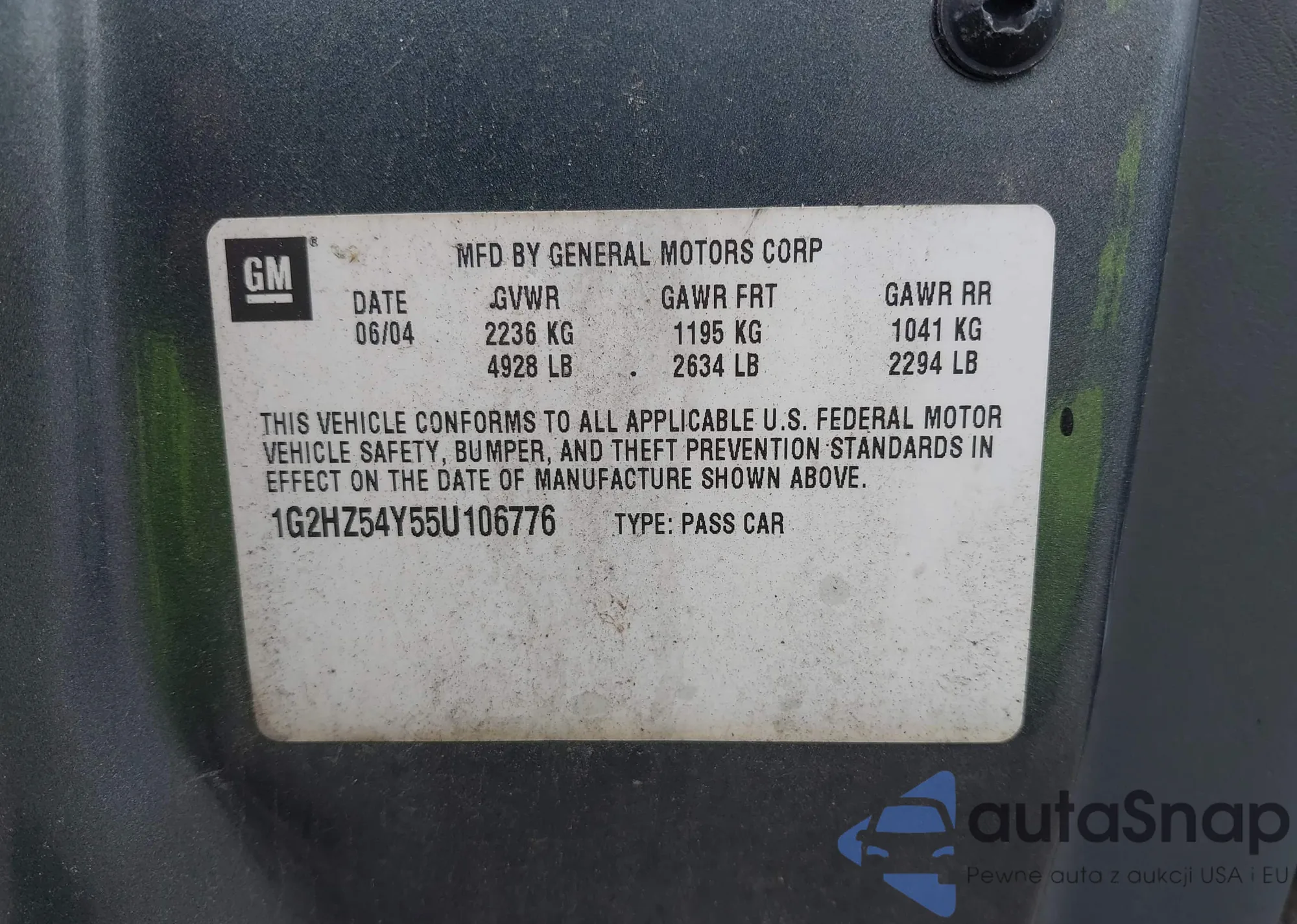 • VIN 1G2HZ54Y55U106776