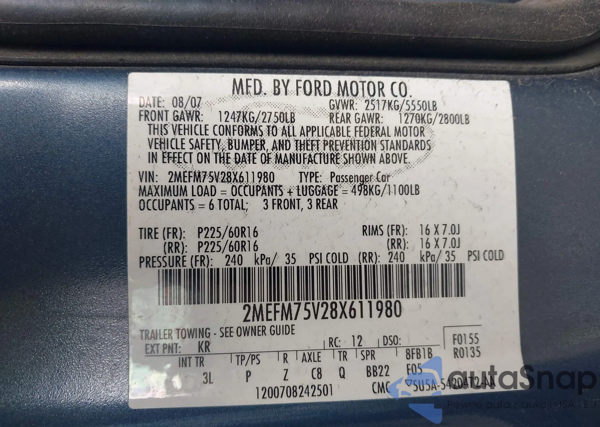 • VIN 2MEFM75V28X611980