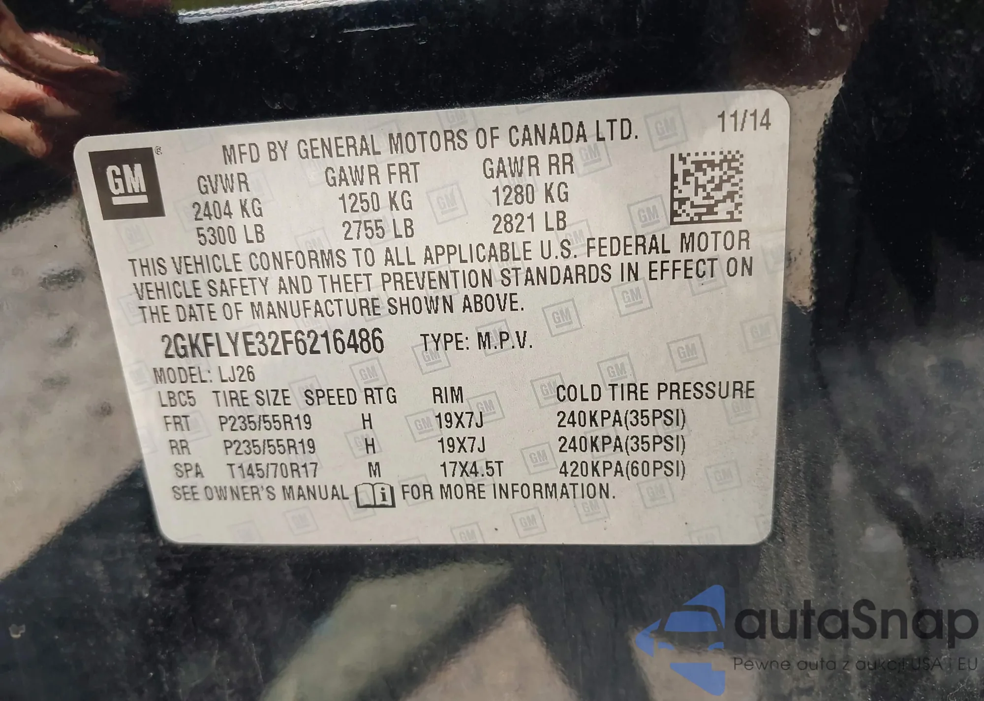 • VIN 2GKFLYE32F6216486