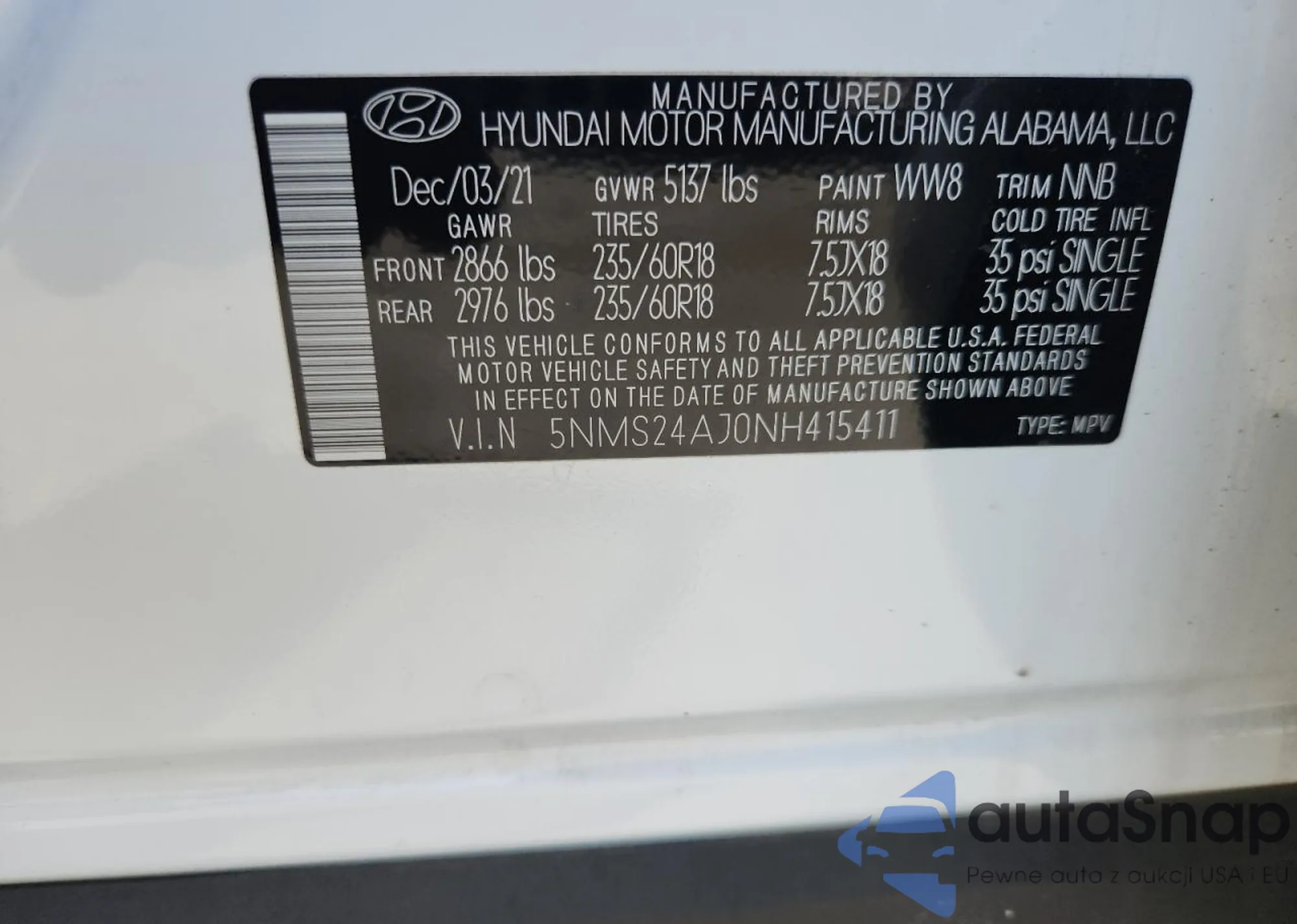 • VIN 5NMS24AJ0NH415411