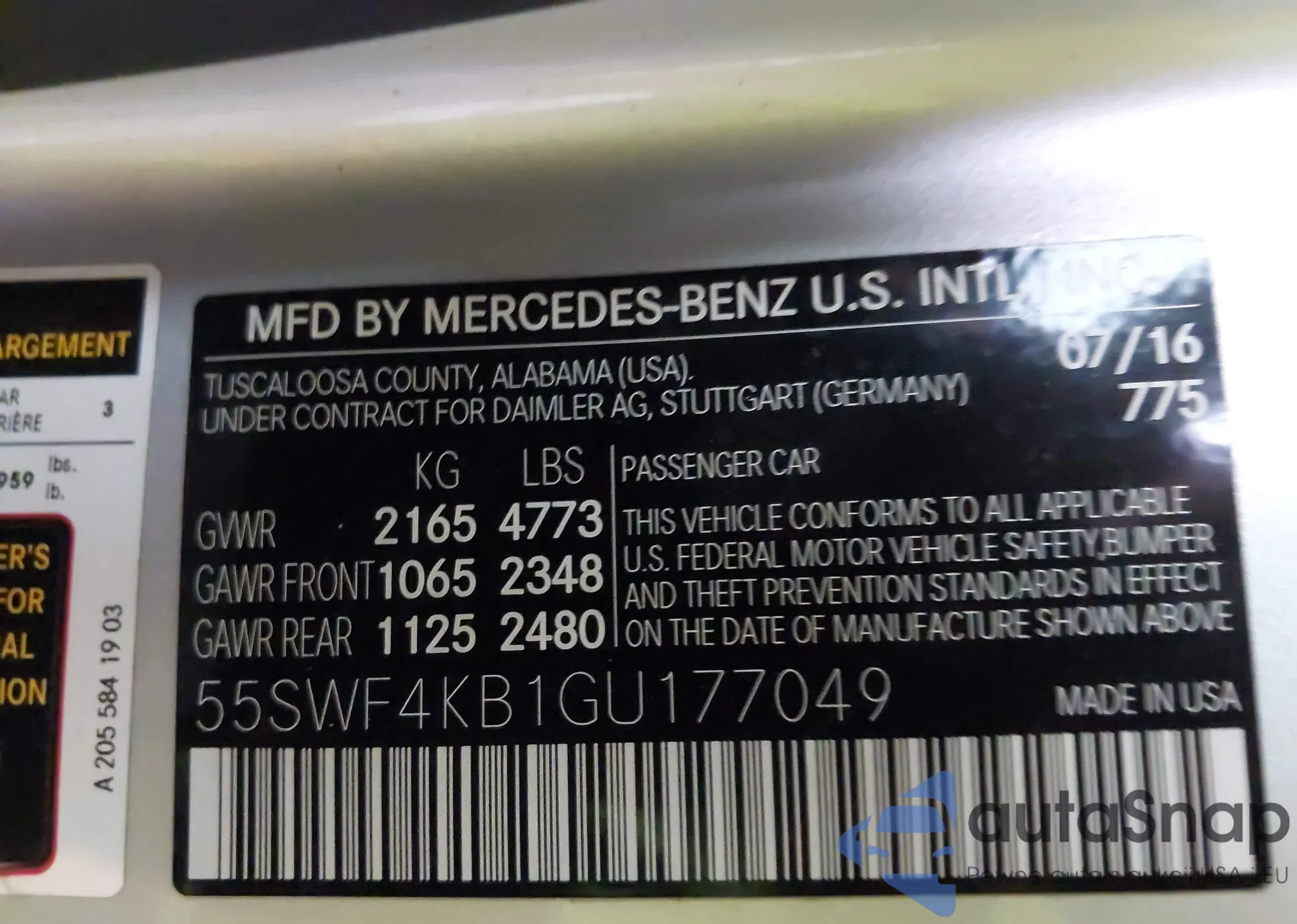 • VIN 55SWF4KB1GU177049