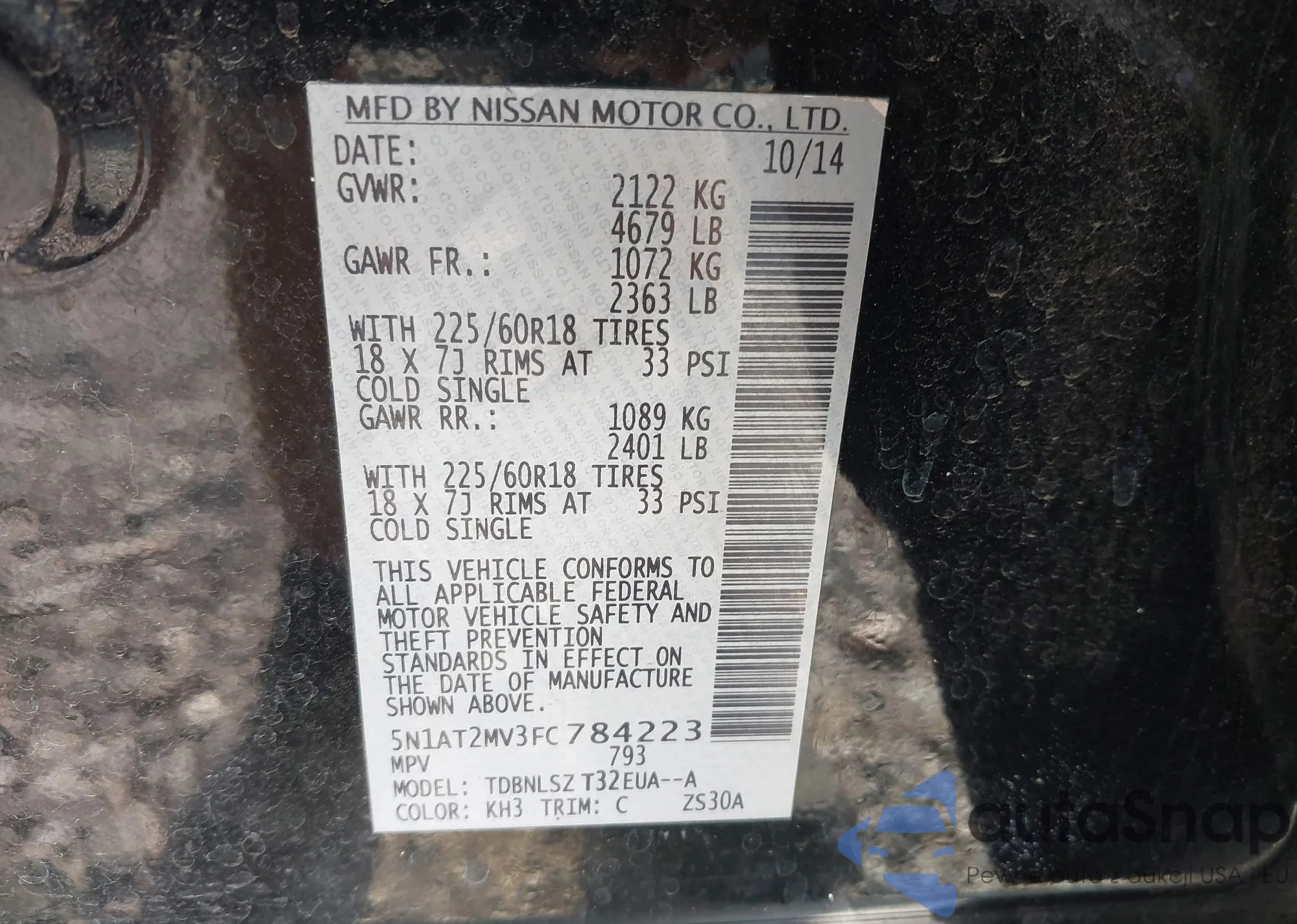 • VIN 5N1AT2MV3FC784223