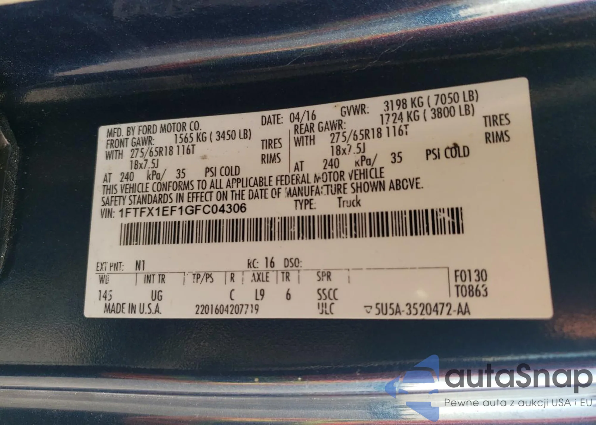 • VIN 1FTFX1EF1GFC04306