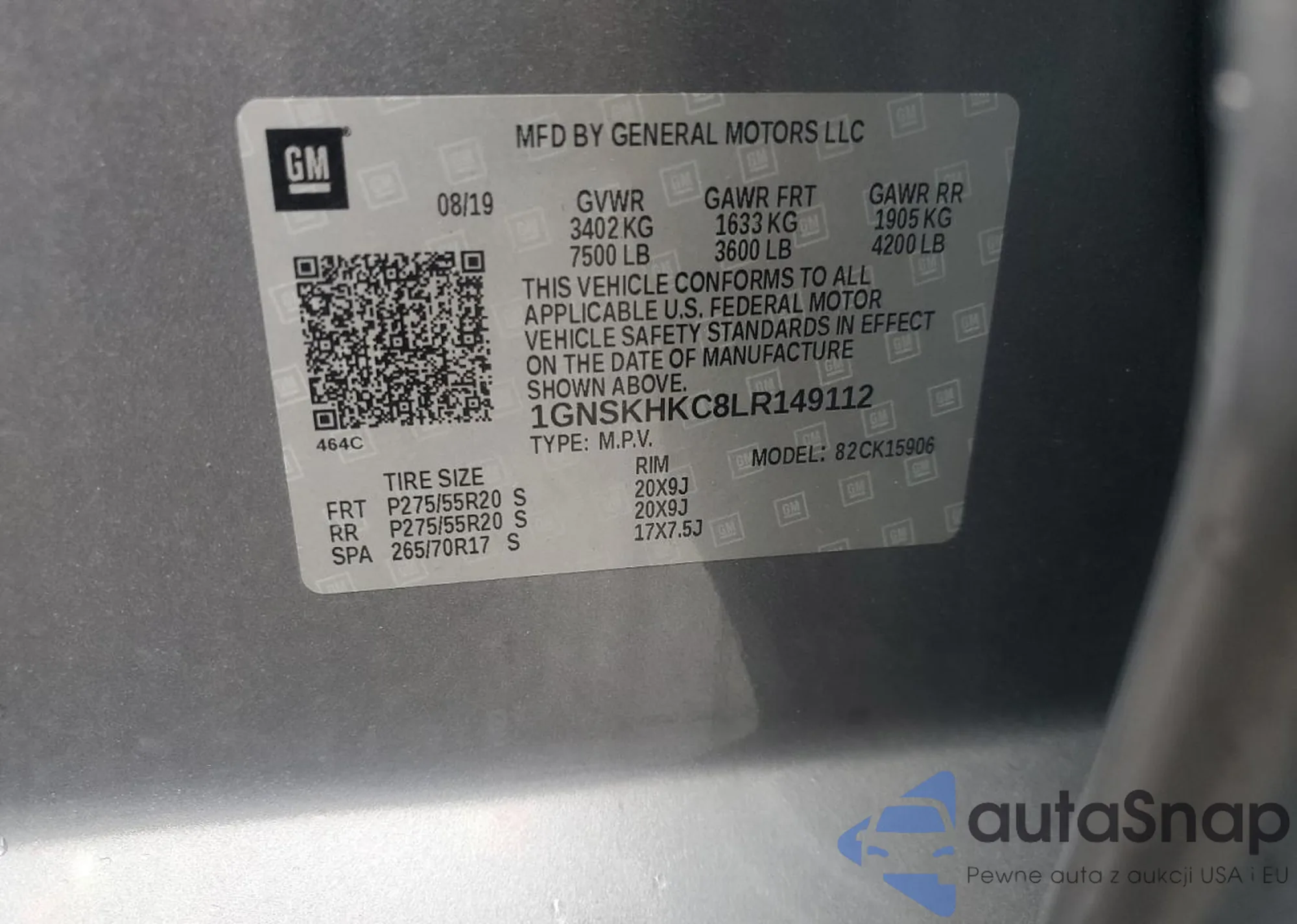 LOT: 64085105 VIN: 1GNSKHKC8LR149112