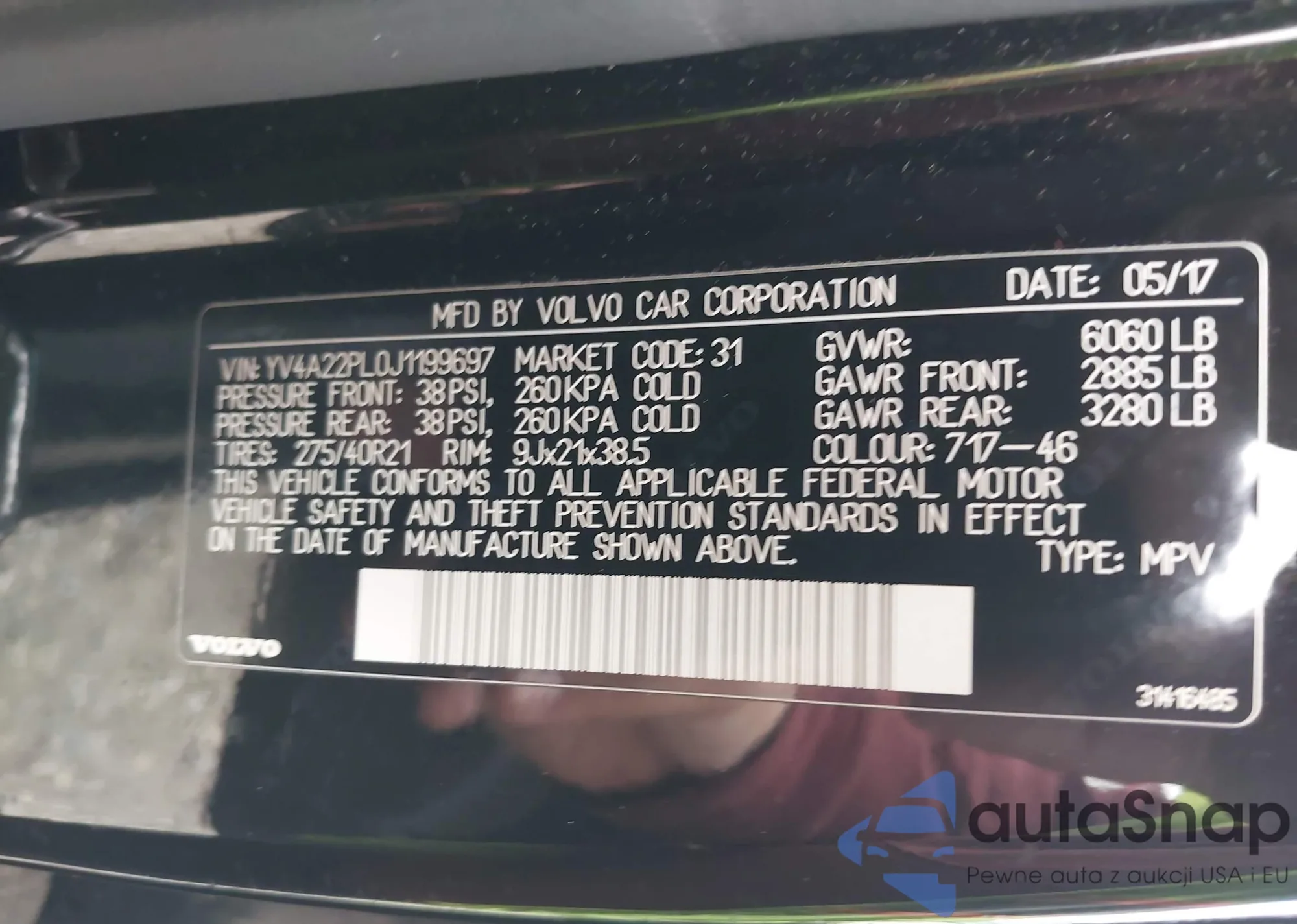 LOT: 42379053 VIN: YV4A22PL0J1199697