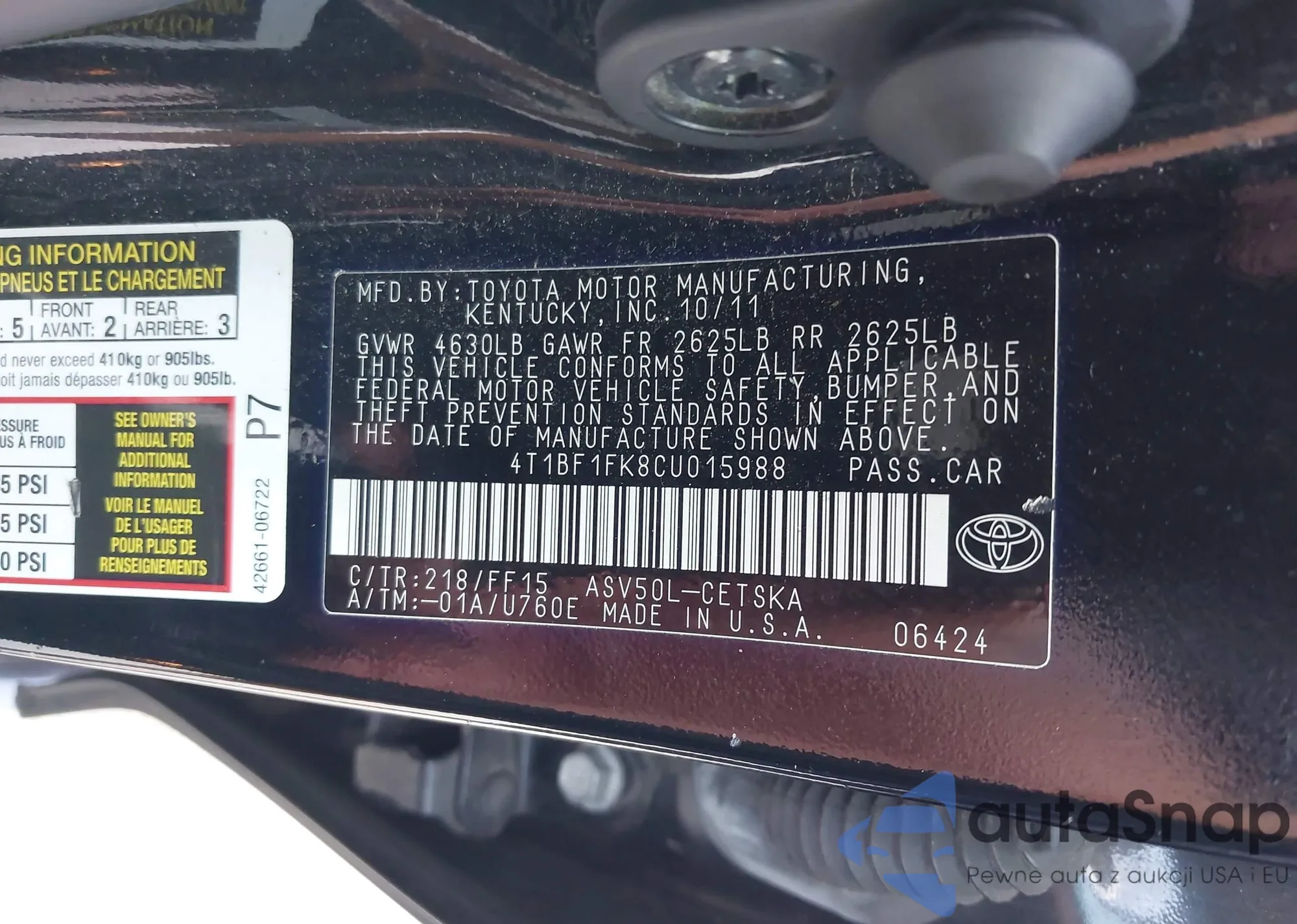 • VIN 4T1BF1FK8CU015988