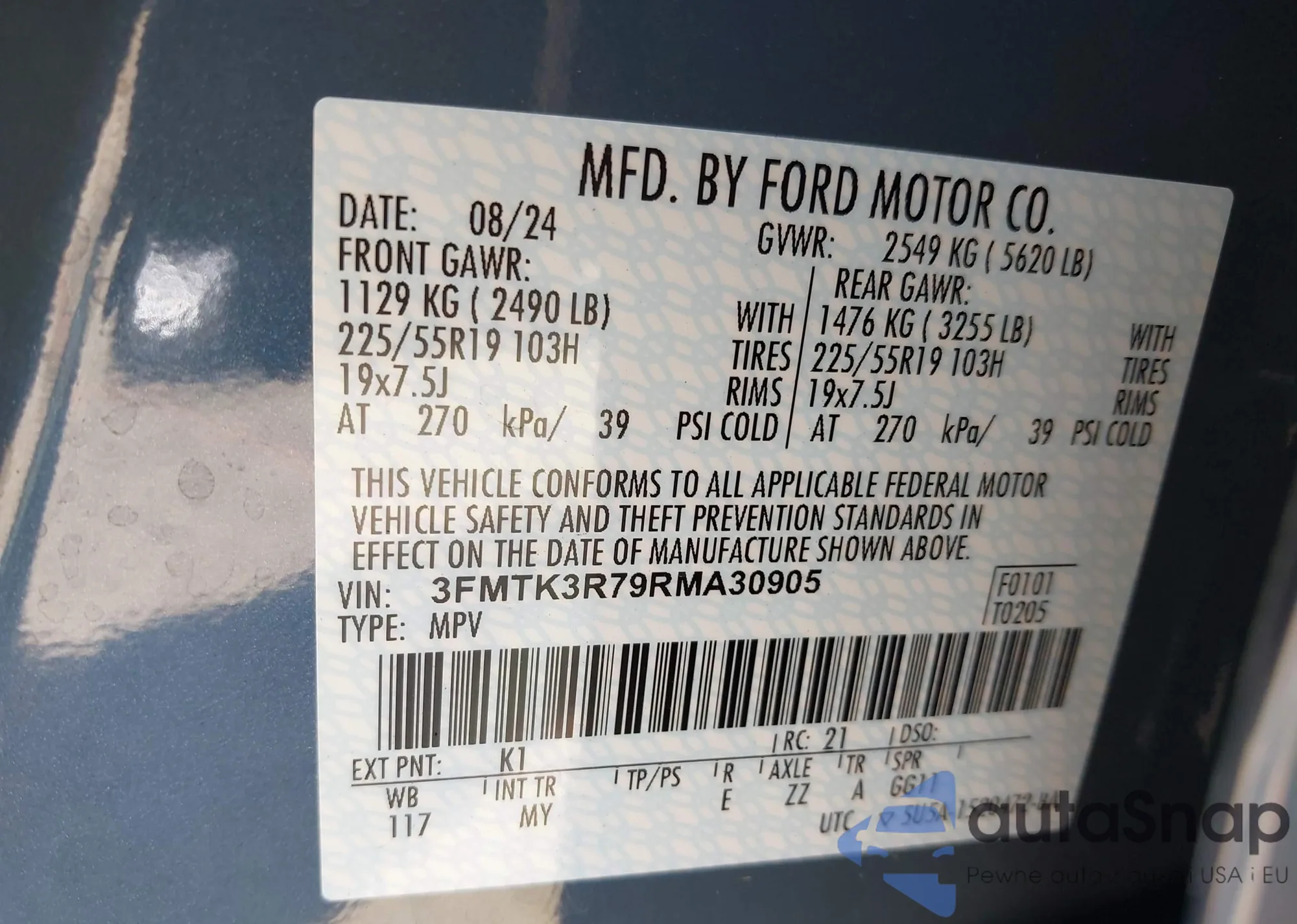 • VIN 3FMTK3R79RMA30905