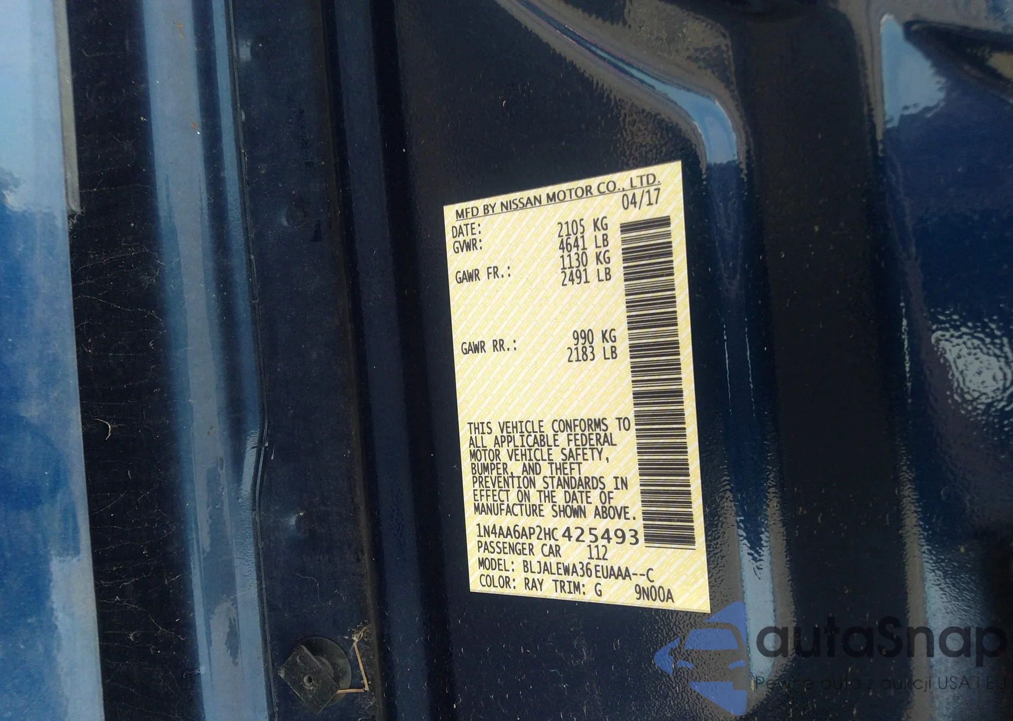 • VIN 1N4AA6AP2HC425493