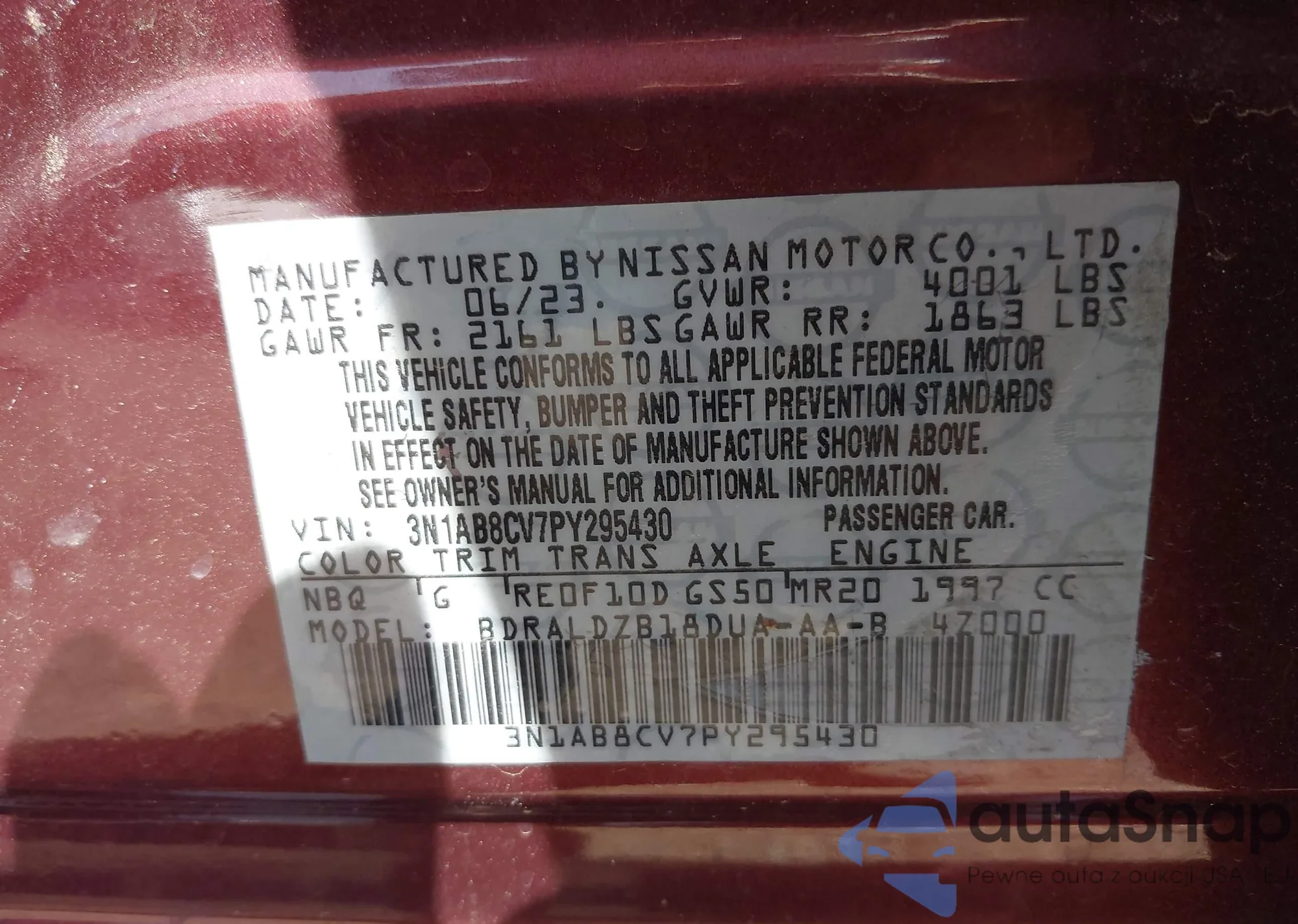LOT: 42112711 VIN: 3N1AB8CV7PY295430