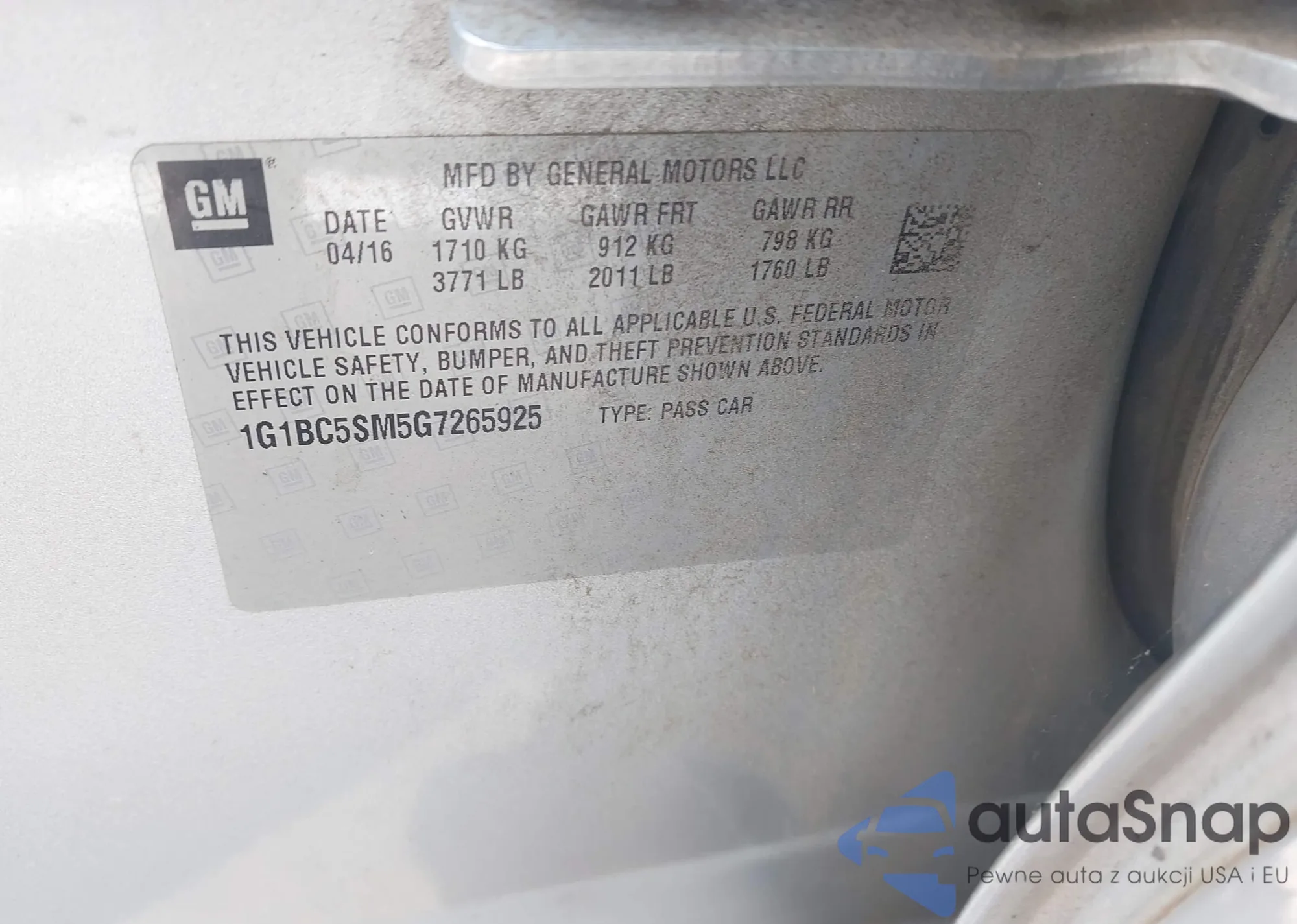 LOT: 42770370 VIN: 1G1BC5SM5G7265925