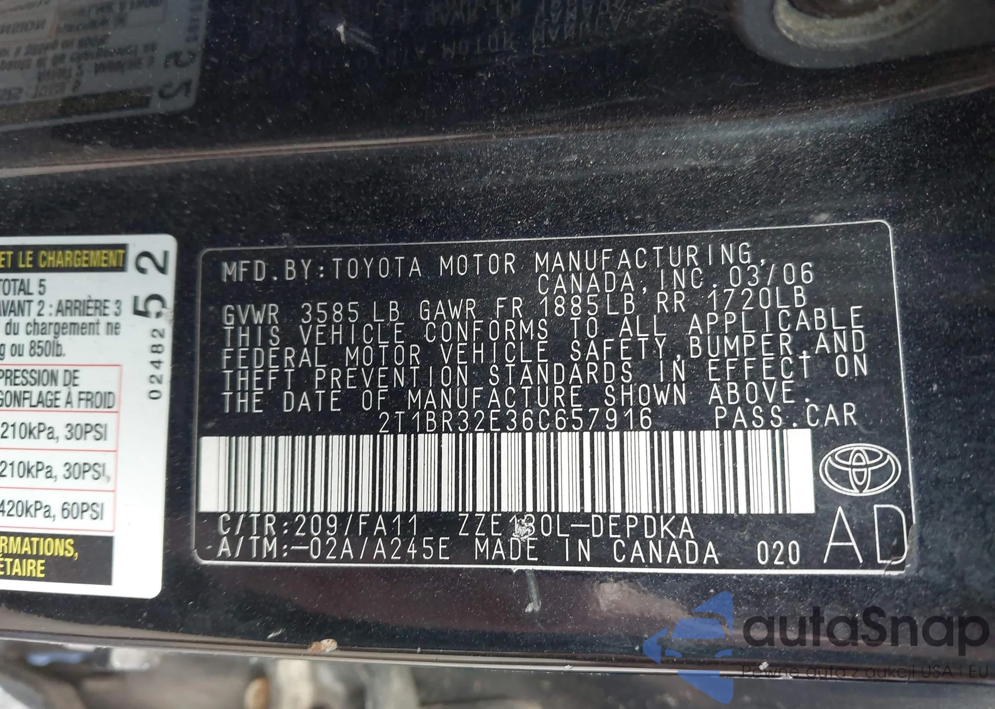 • VIN 2T1BR32E36C657916
