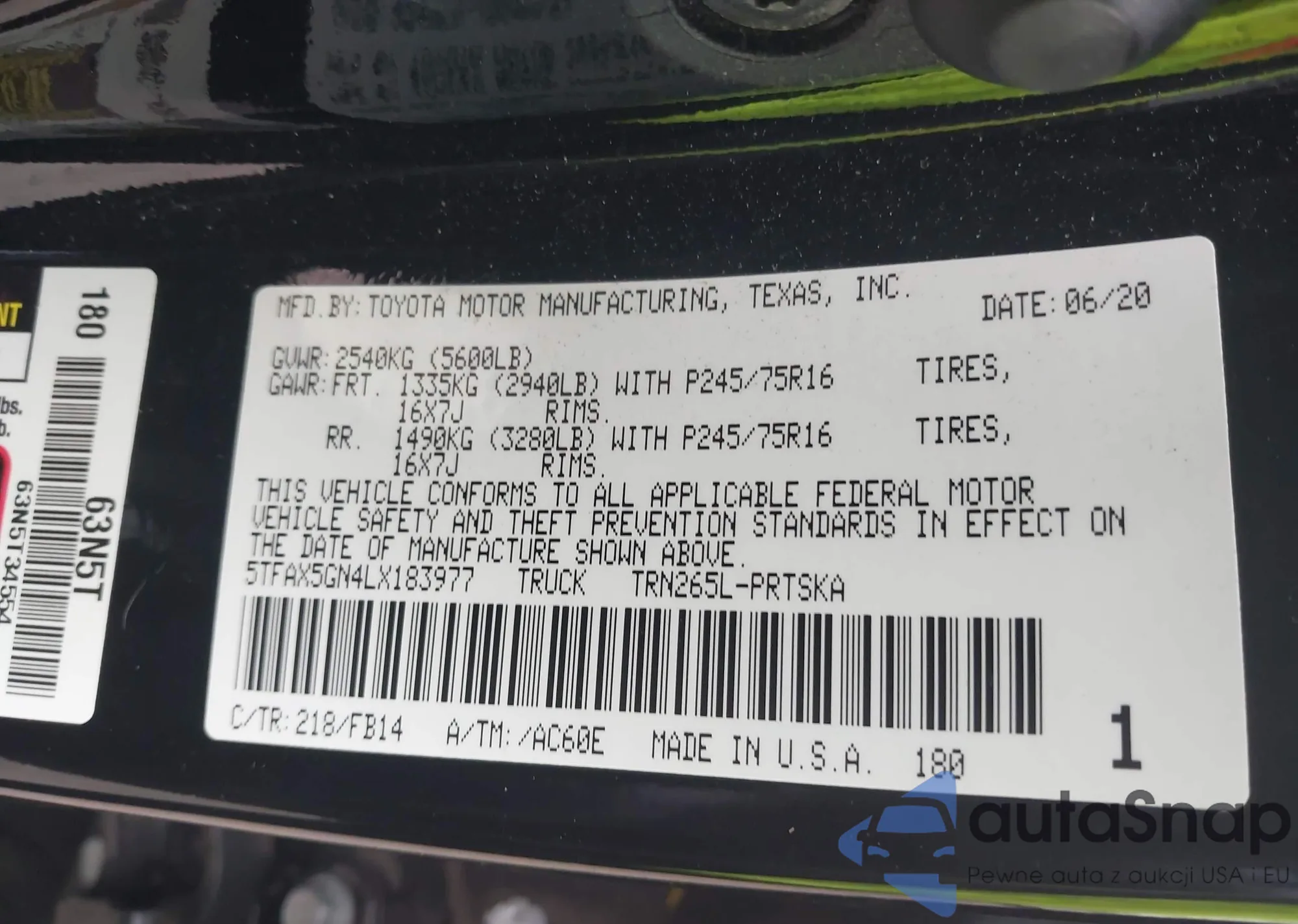 LOT: 42508608 VIN: 5TFAX5GN4LX183977
