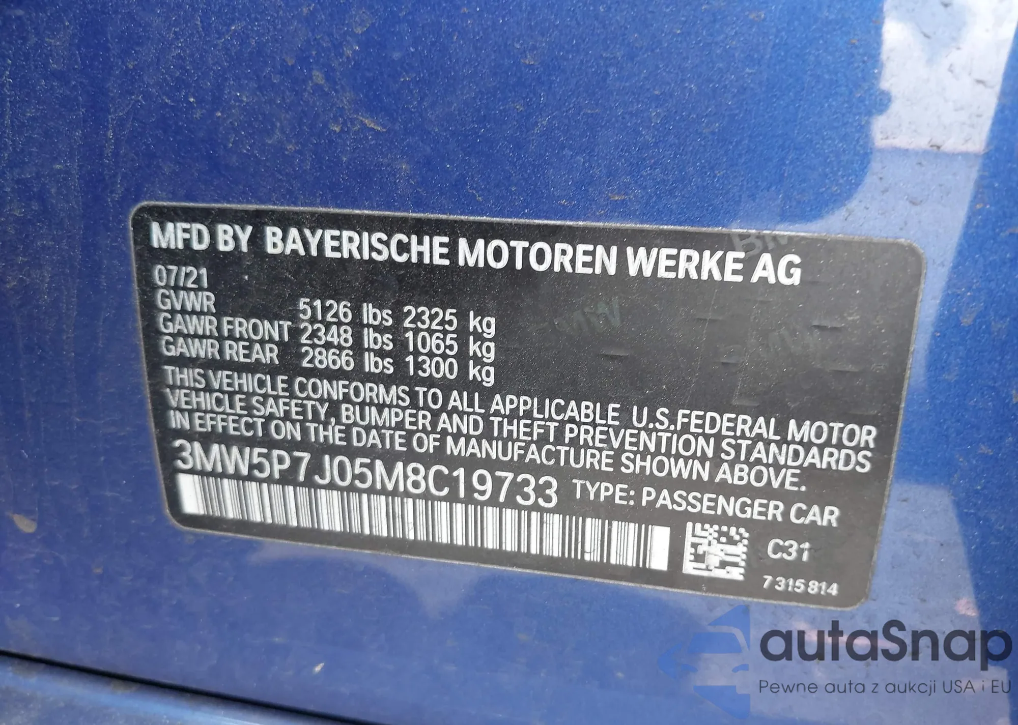 • VIN WBAVM1C59FV316755