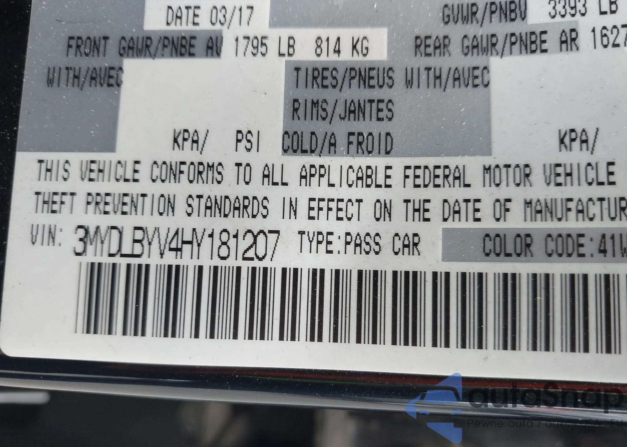 LOT: 42703917 VIN: 3MYDLBYV4HY181207