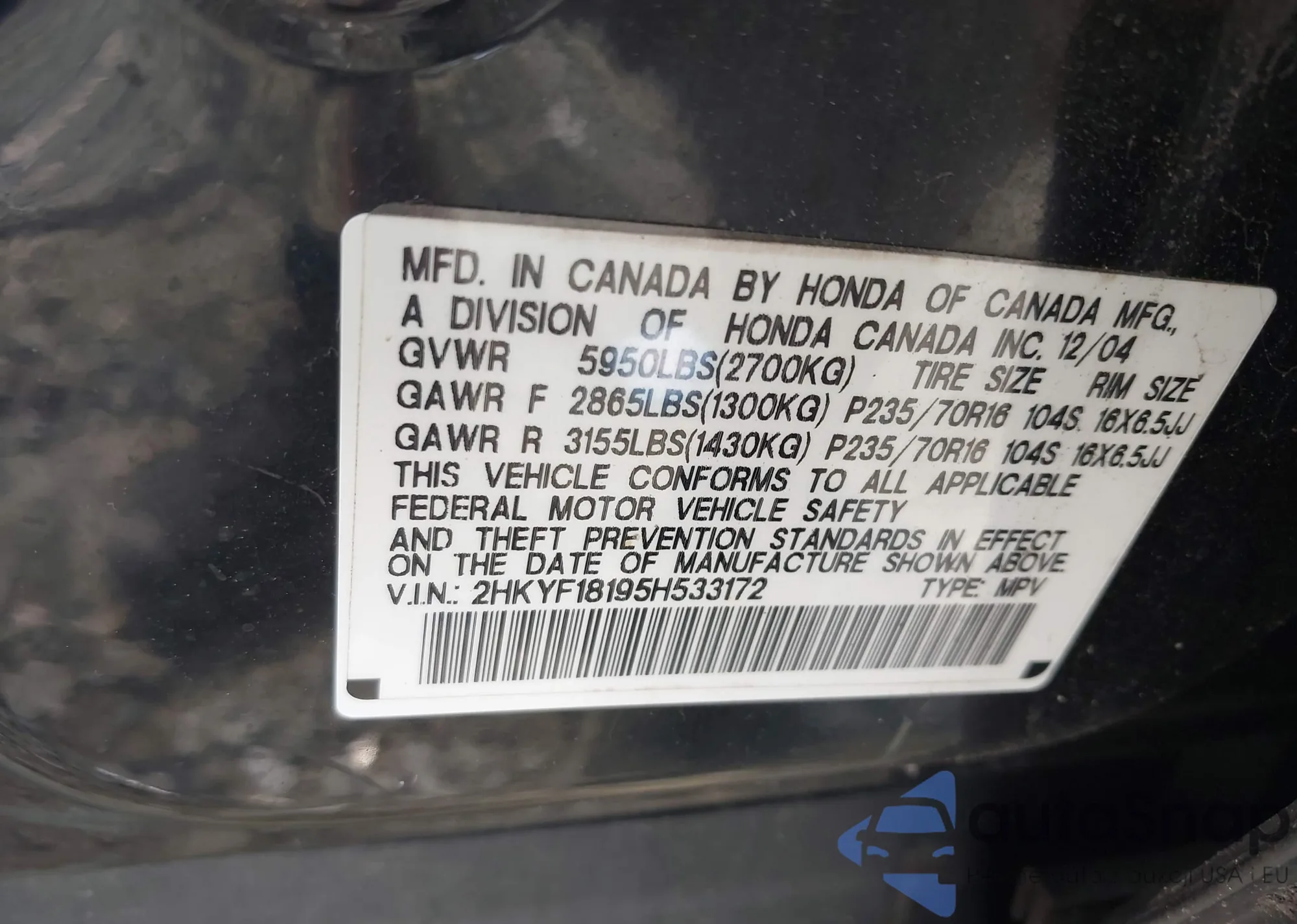 • VIN SHSRD78854U254155