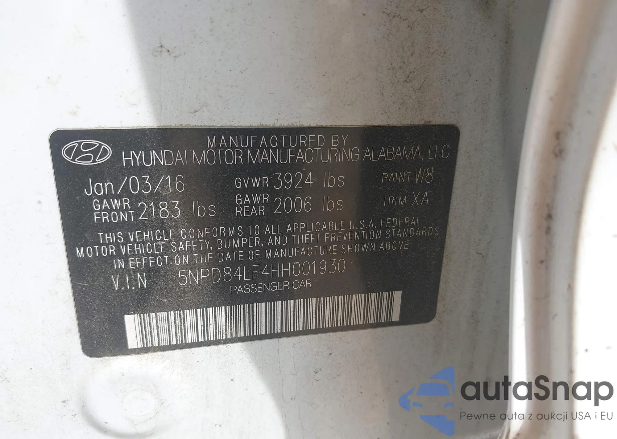• VIN 5NPD84LF4HH001930