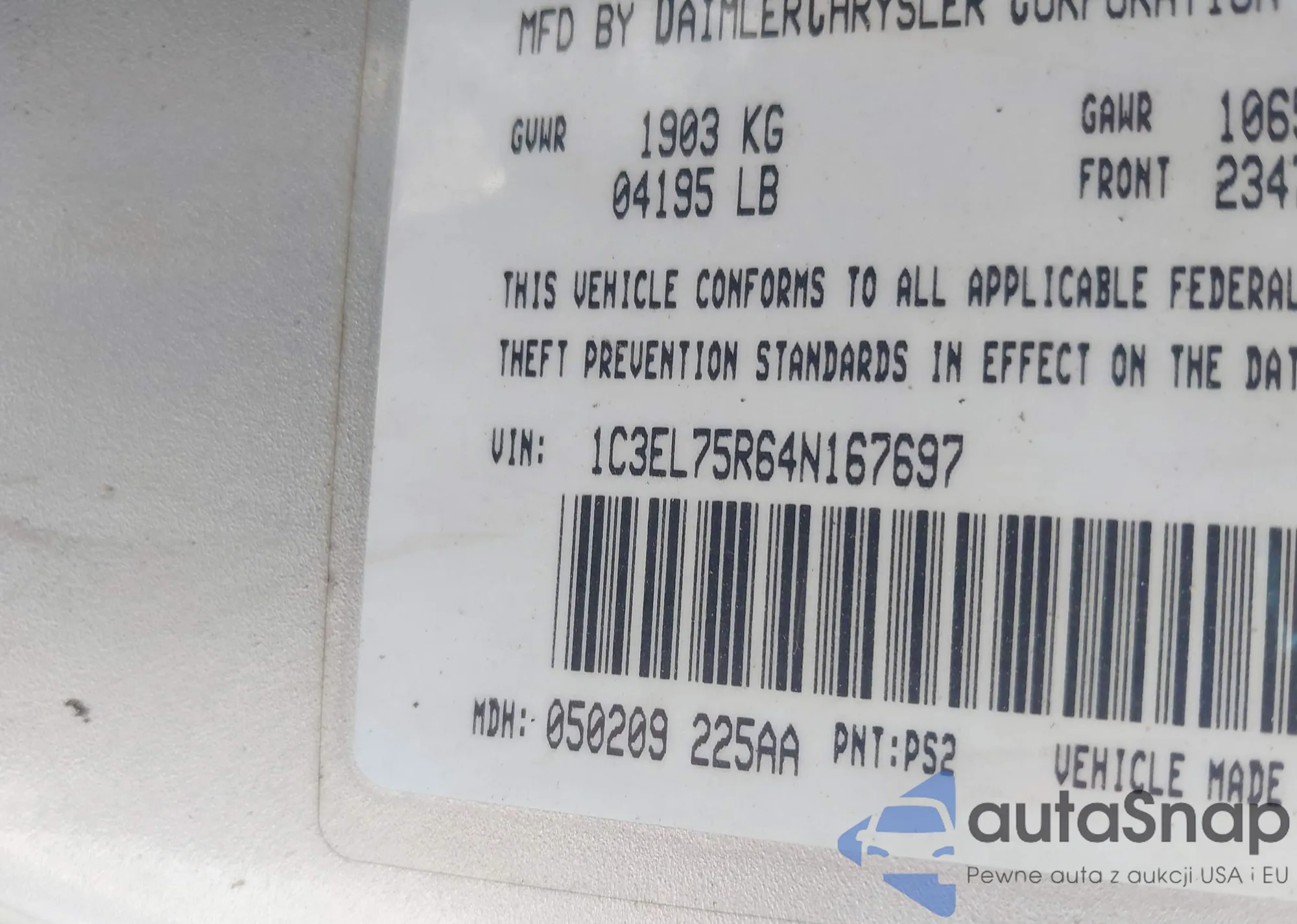 LOT: 42660429 VIN: 1C3EL75R64N167697