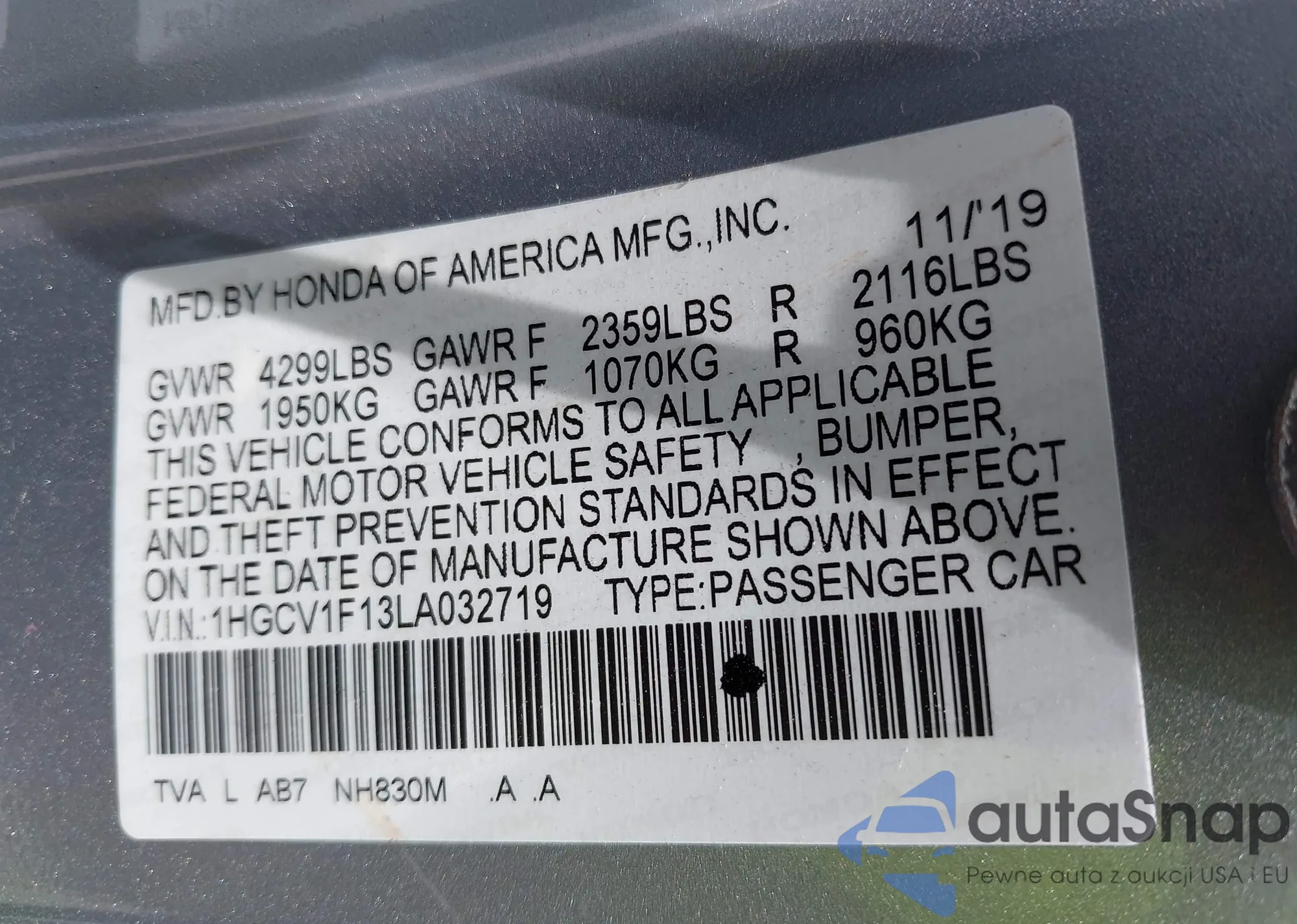 LOT: 42352149 VIN: 1HGCM66427A080387