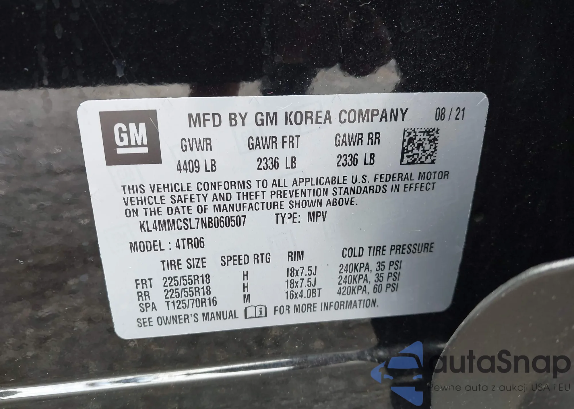 • VIN KL8CD6SA8LC441817