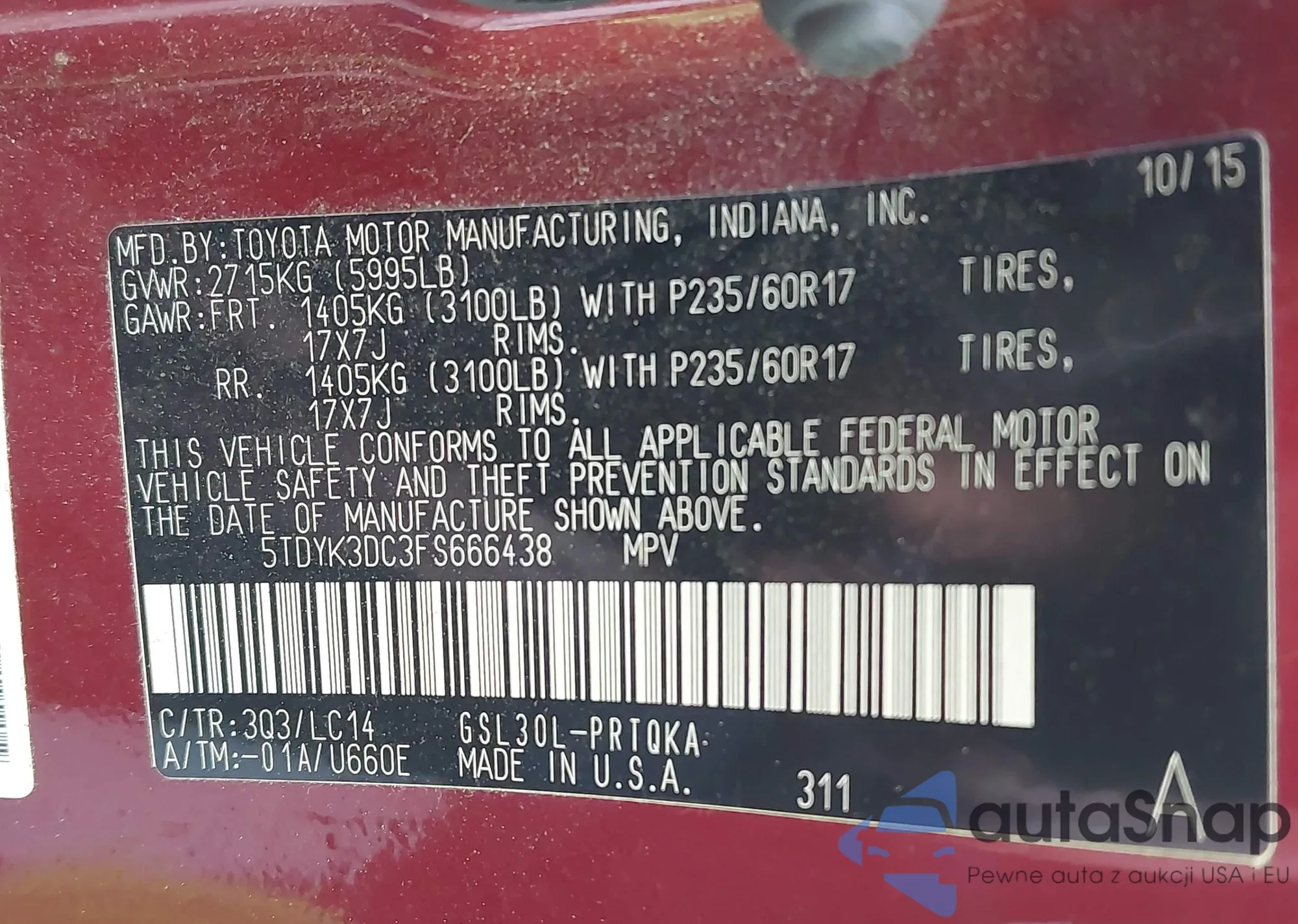 • VIN 5TDYK3DC3FS666438