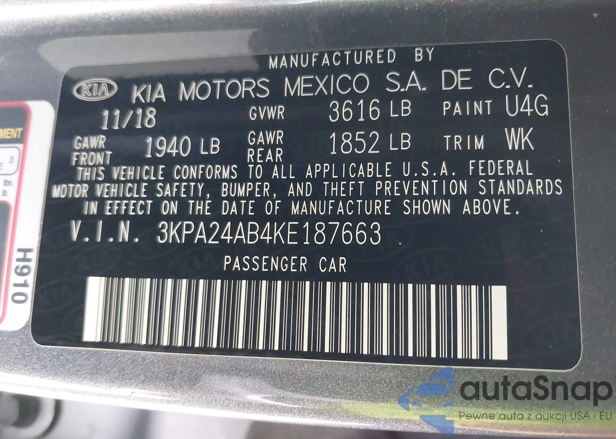 • VIN 3KPA24AB4KE187663