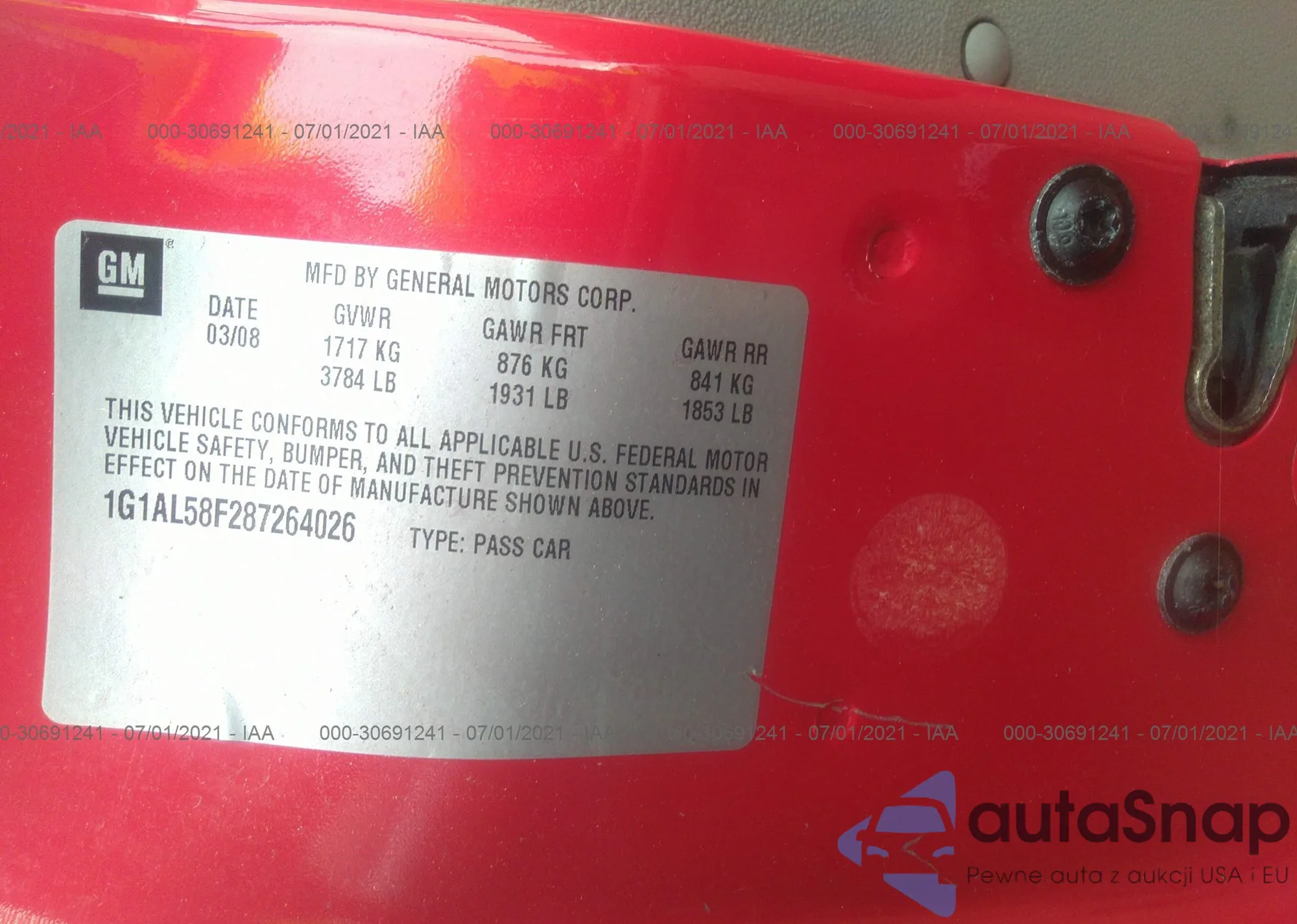 LOT: 30691241 VIN: 1G1AL58F287264026