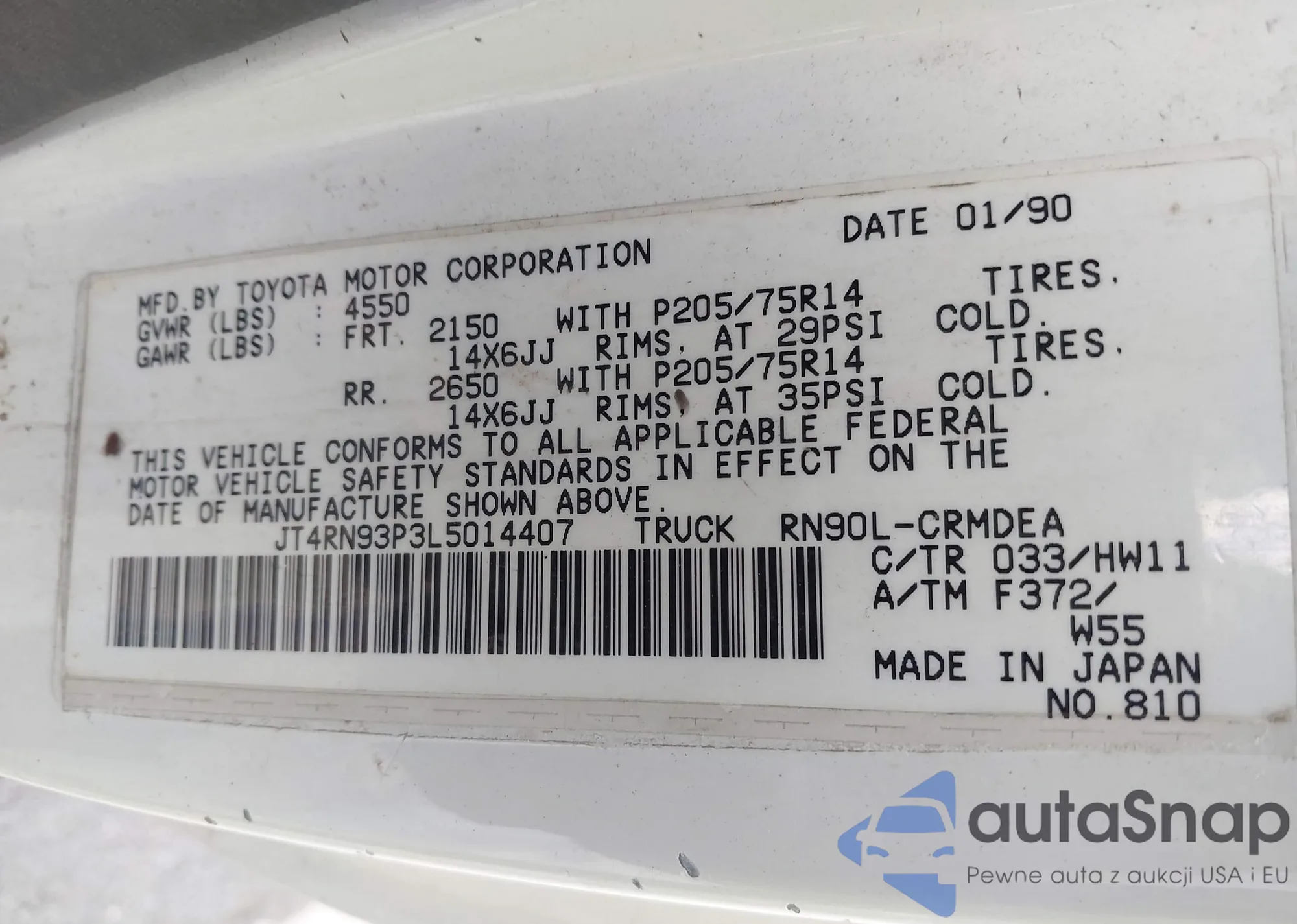 LOT: 42515971 VIN: JT4RN93P3L5014407