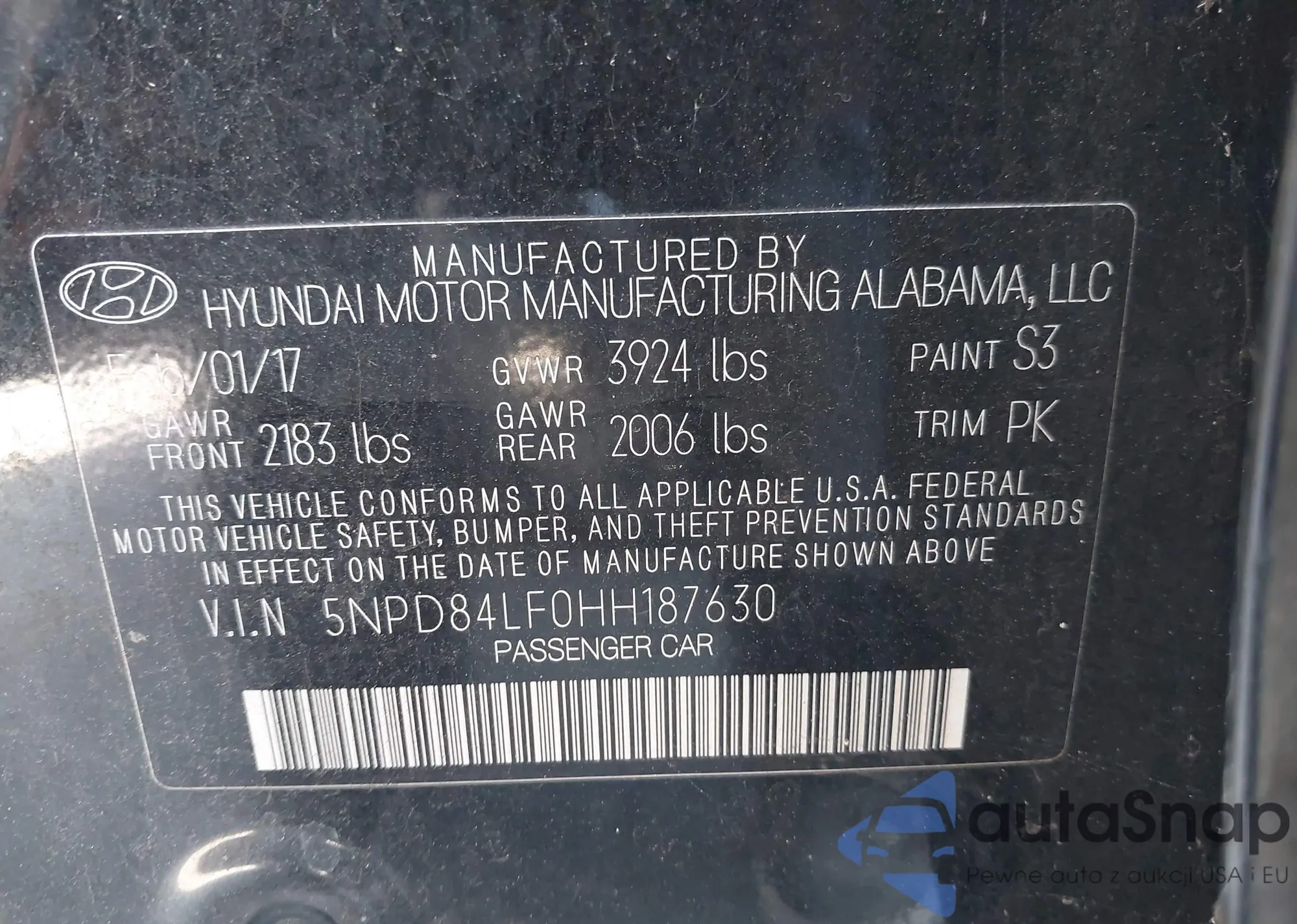 LOT: 42691033 VIN: 5NPD84LF0HH187630