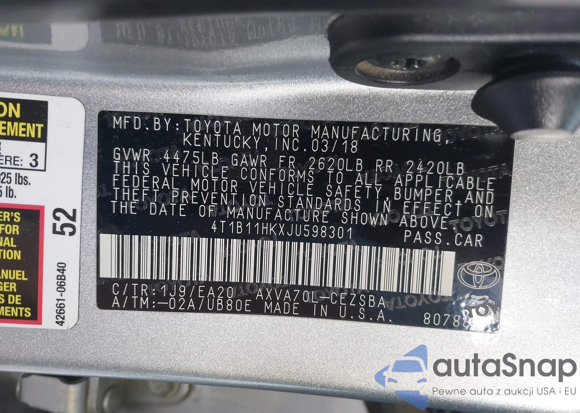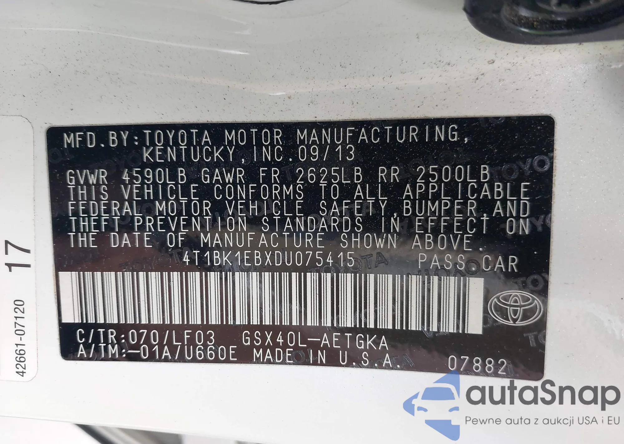 LOT: 42428106 VIN: 5TEKU72N47Z384096