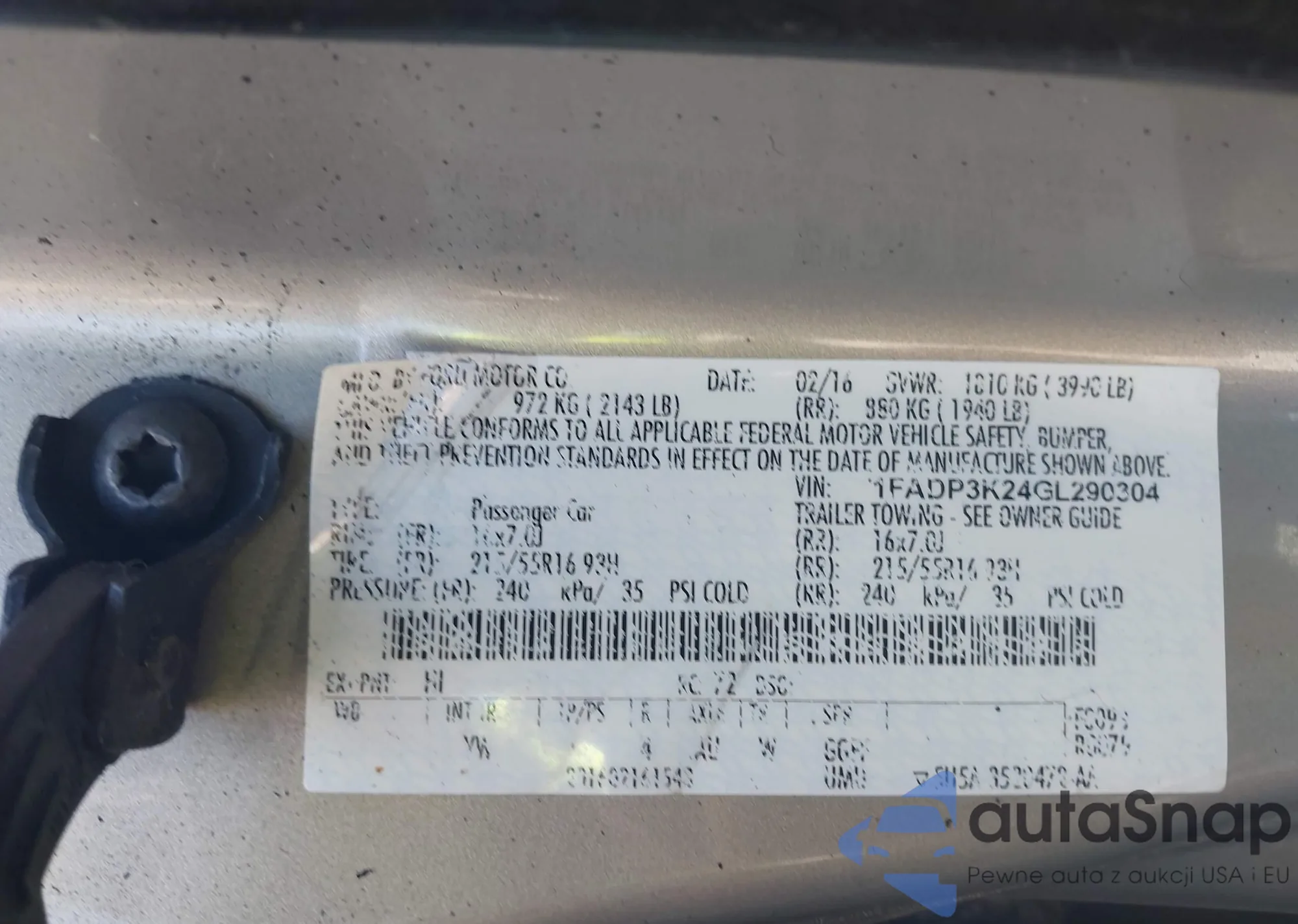 • VIN 1FADP3F24DL104718