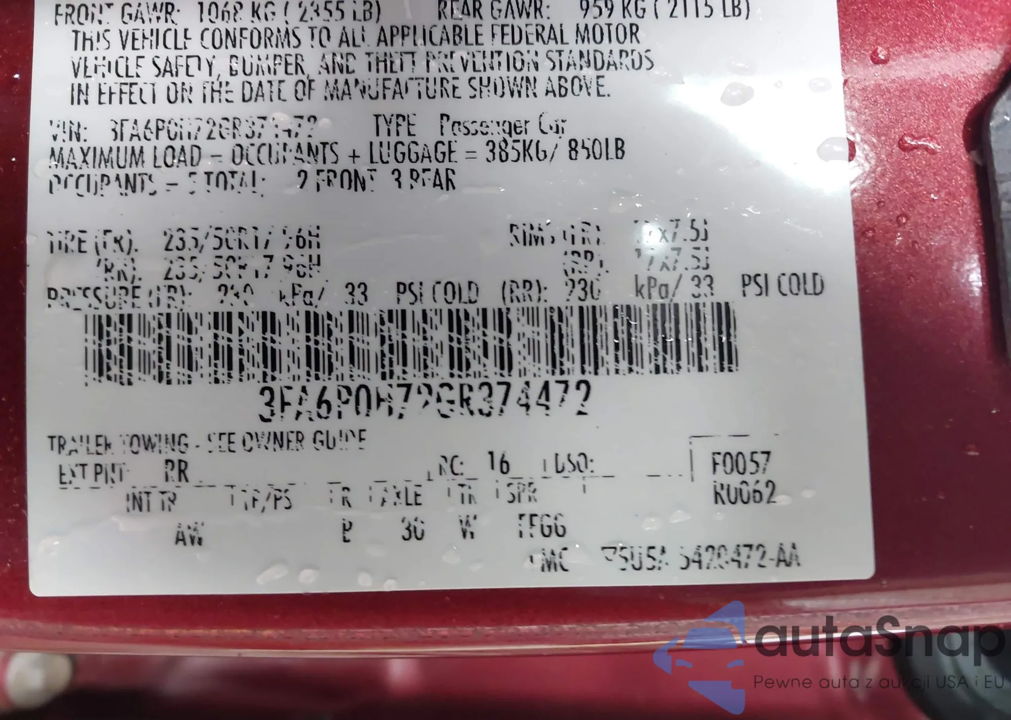 LOT: 42634521 VIN: 1FAHP3F21CL390012
