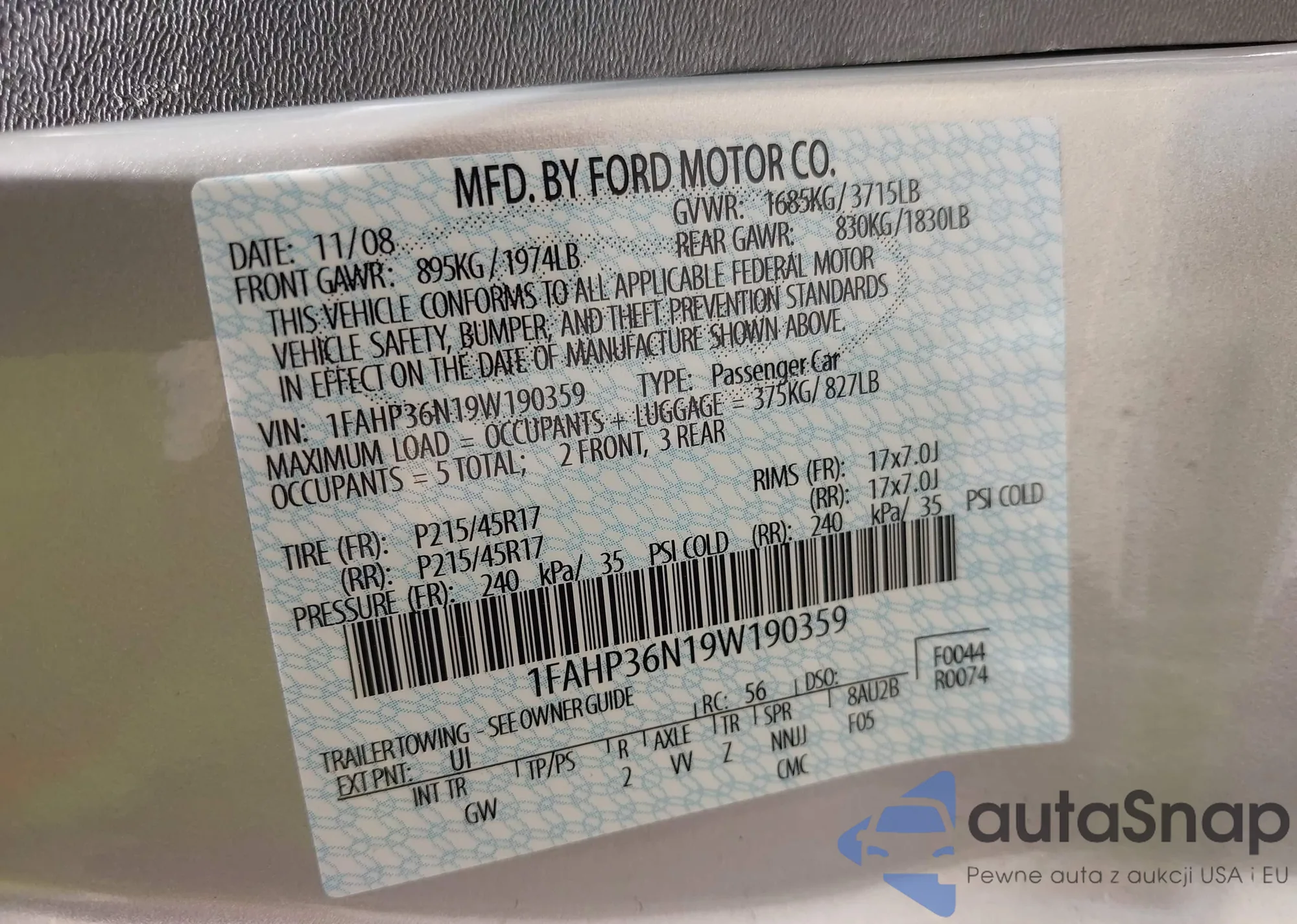• VIN 1FAHP36N19W190359