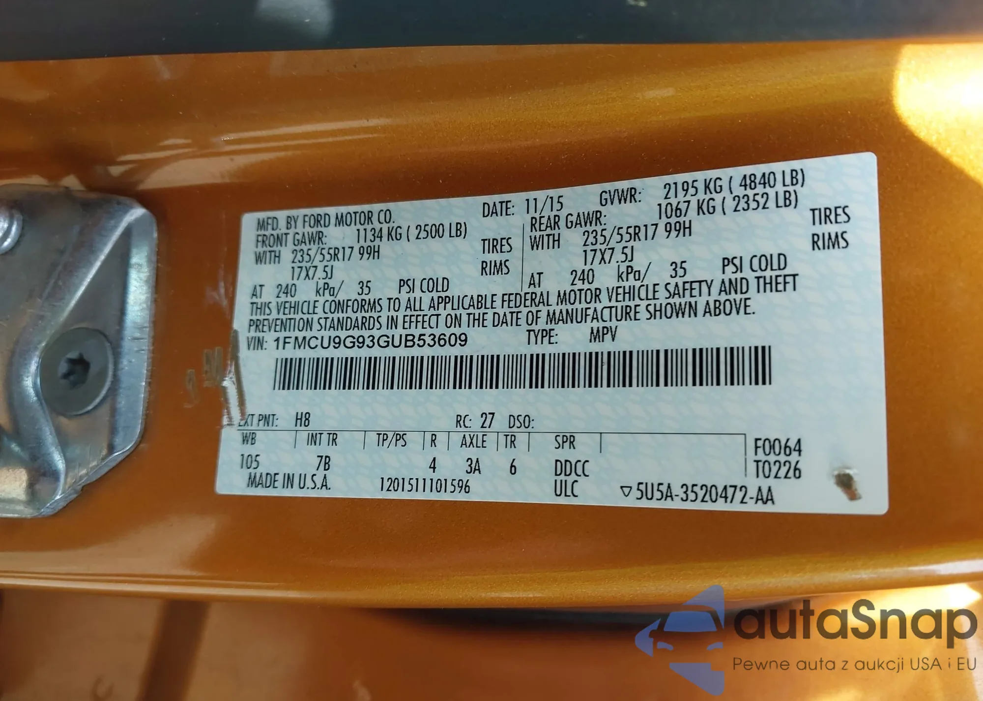 LOT: 42634399 VIN: 1FMCU9G93GUB53609