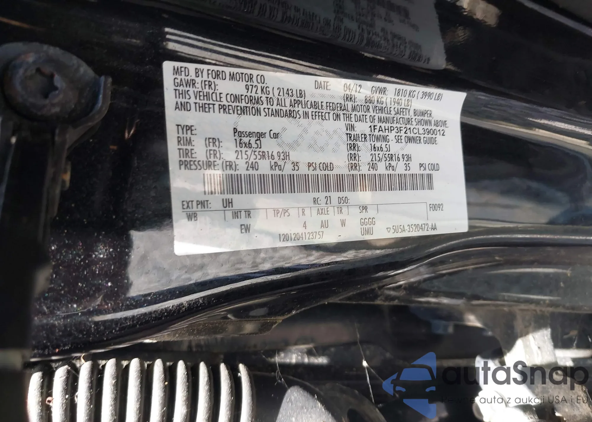 • VIN 1FAHP3F21CL390012