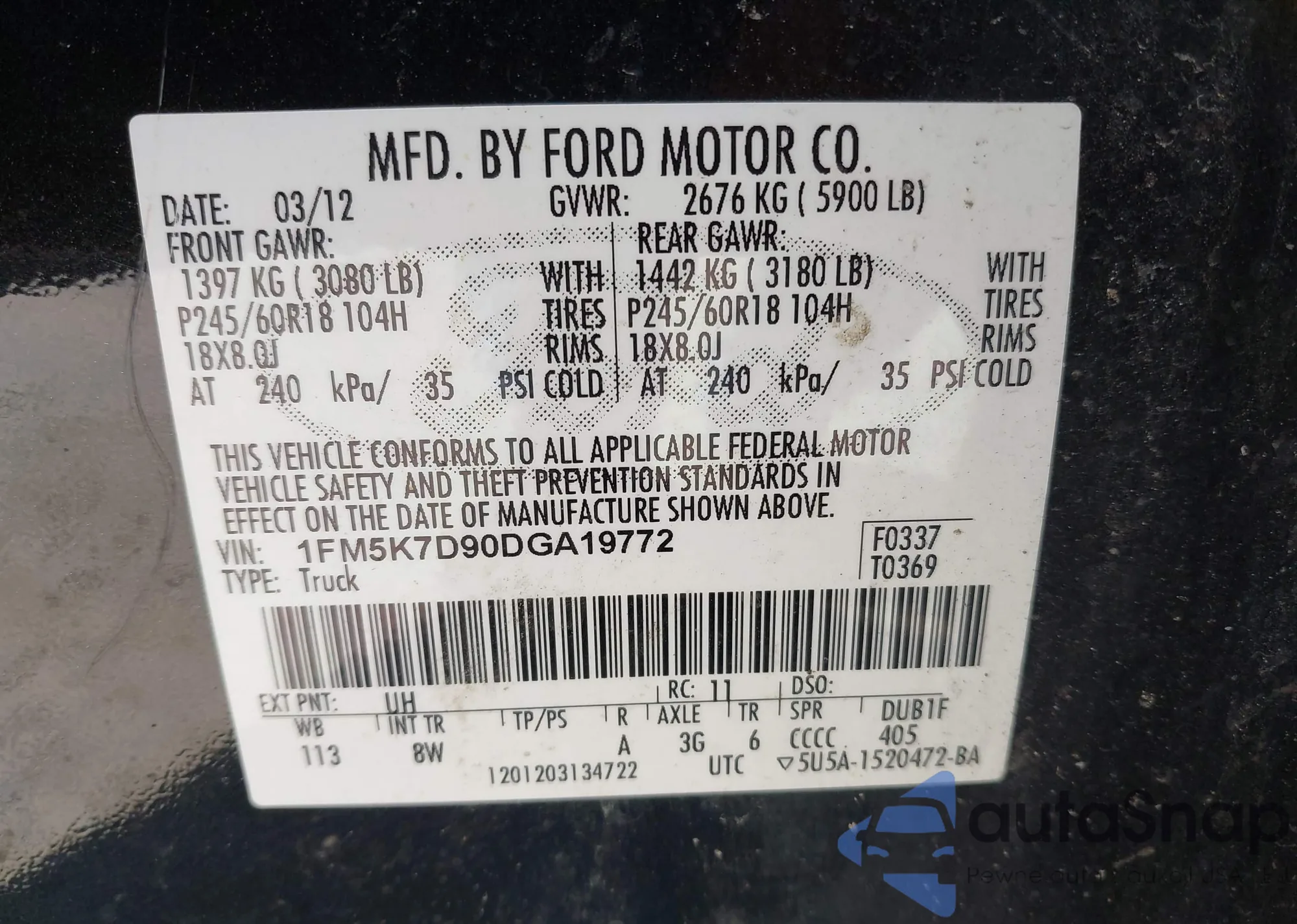 • VIN 1FM5K7D90DGA19772