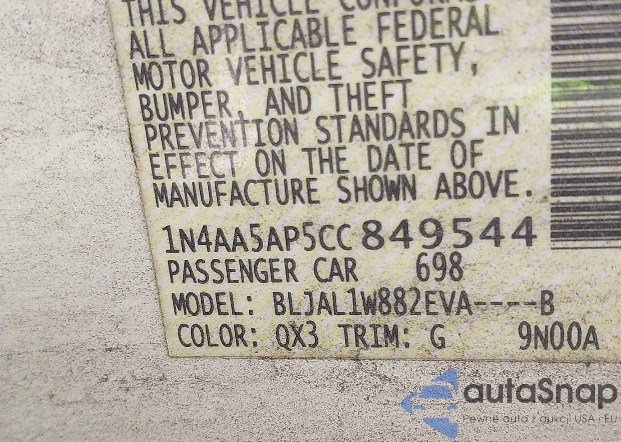 LOT: 42408453 VIN: WAUEFGFF0F1020791