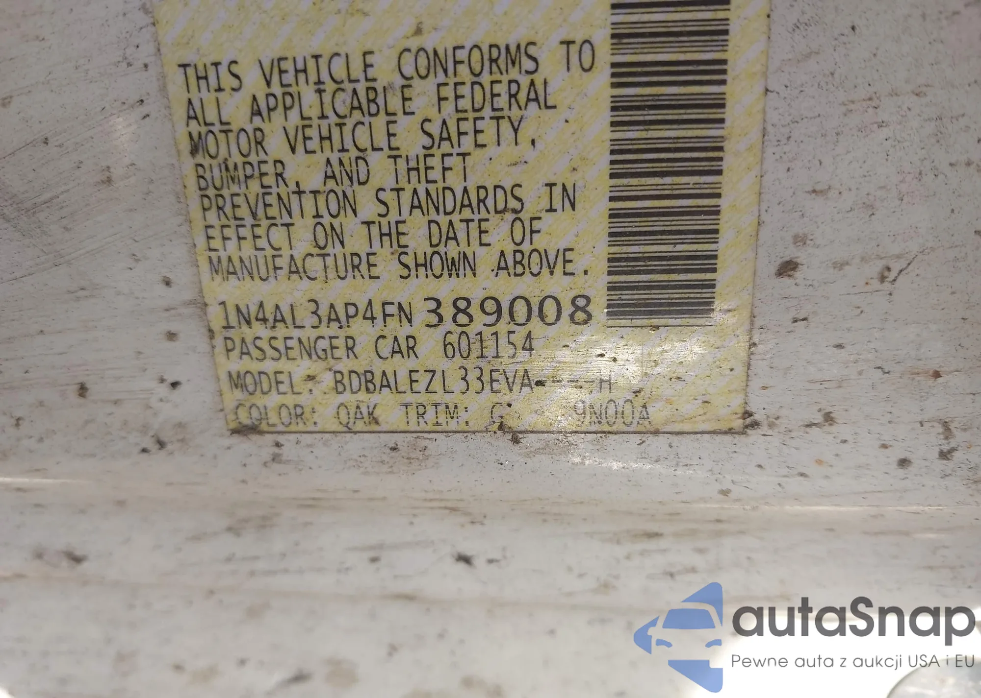 • VIN 1N4AL3AP4FN389008