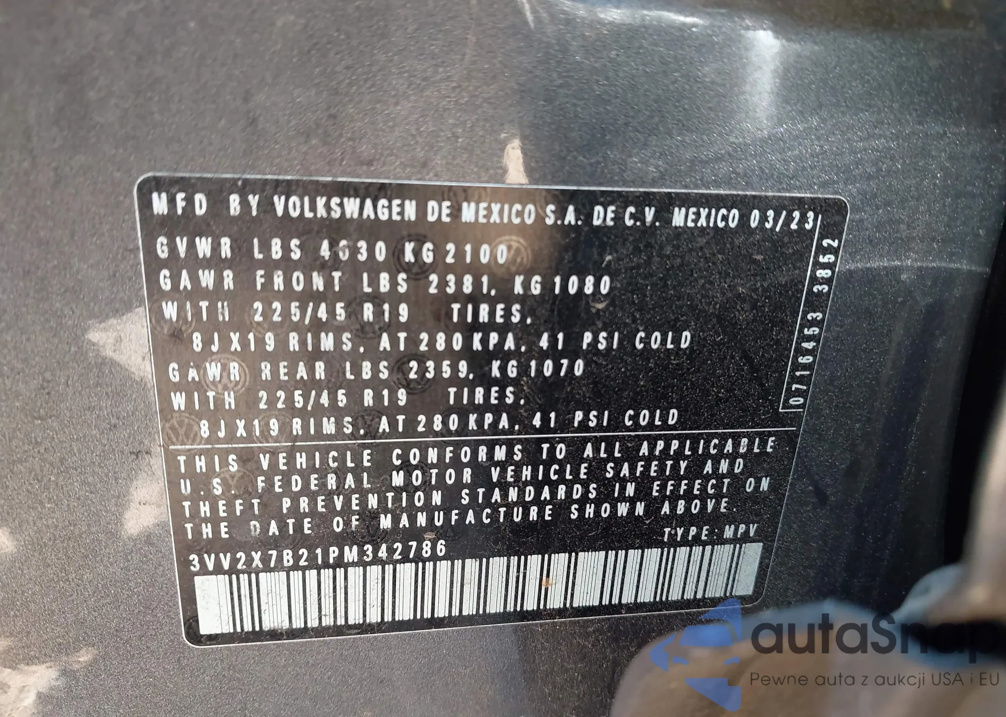 2023 Volkswagen Taos 1.5T Sel из США, поврежденный, VIN 3VV2X7B21PM342786