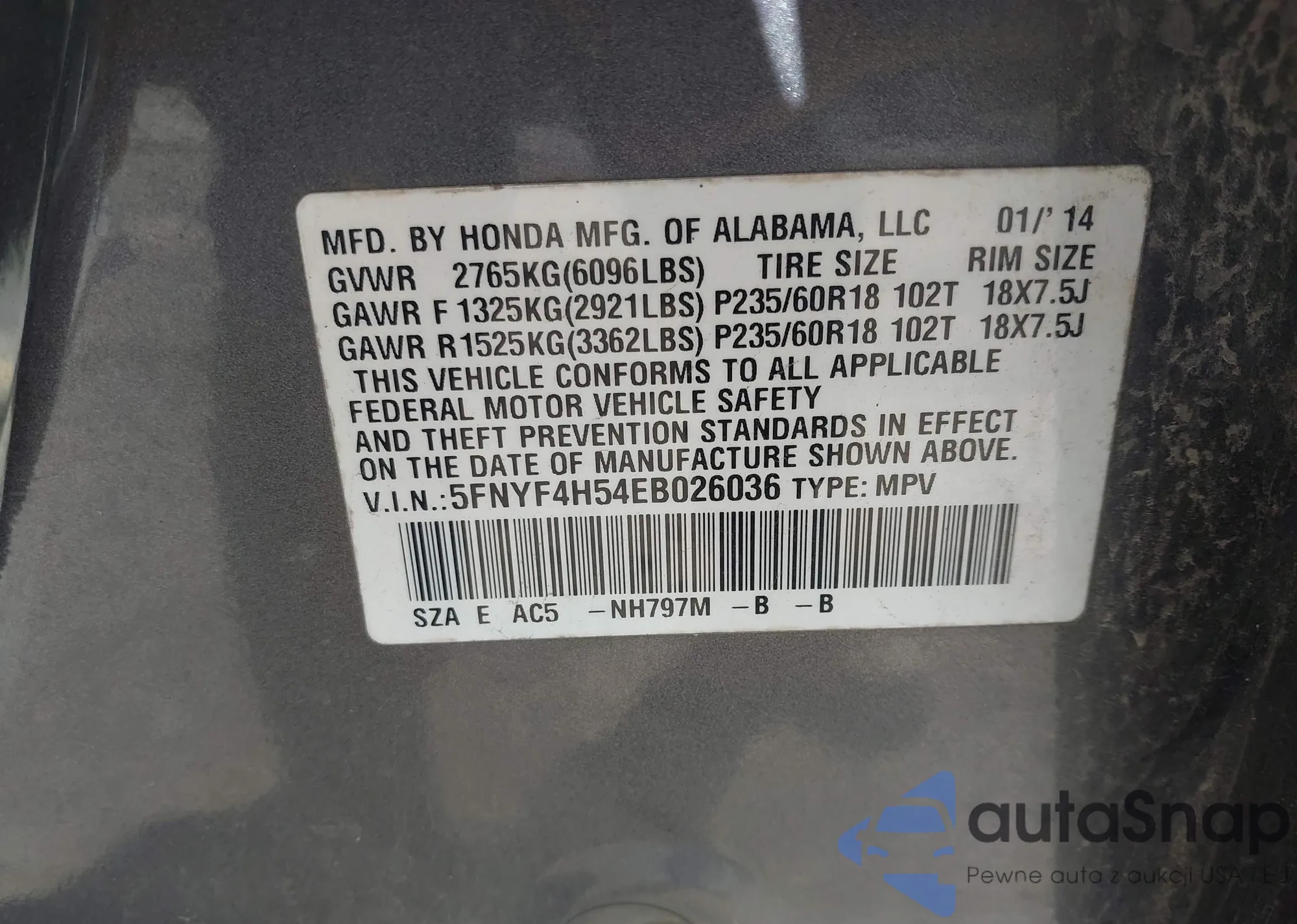 • VIN 5J6RT6H80NL047363