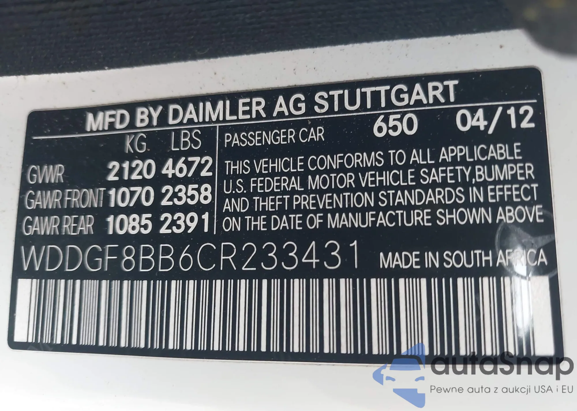 LOT: 42515804 VIN: WDDGF8BB6CR233431